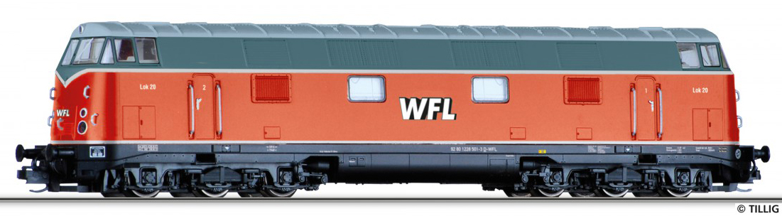 | dieselová lokomotiva oranžová-šedá „Wedler & Franz Lokomotivdienstleistungen“ |
