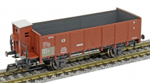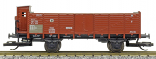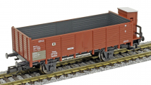 | otevřený nákladní vůz červenohnědý s brzdařskou budkou |