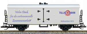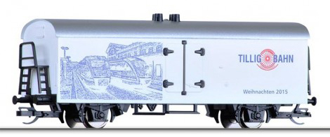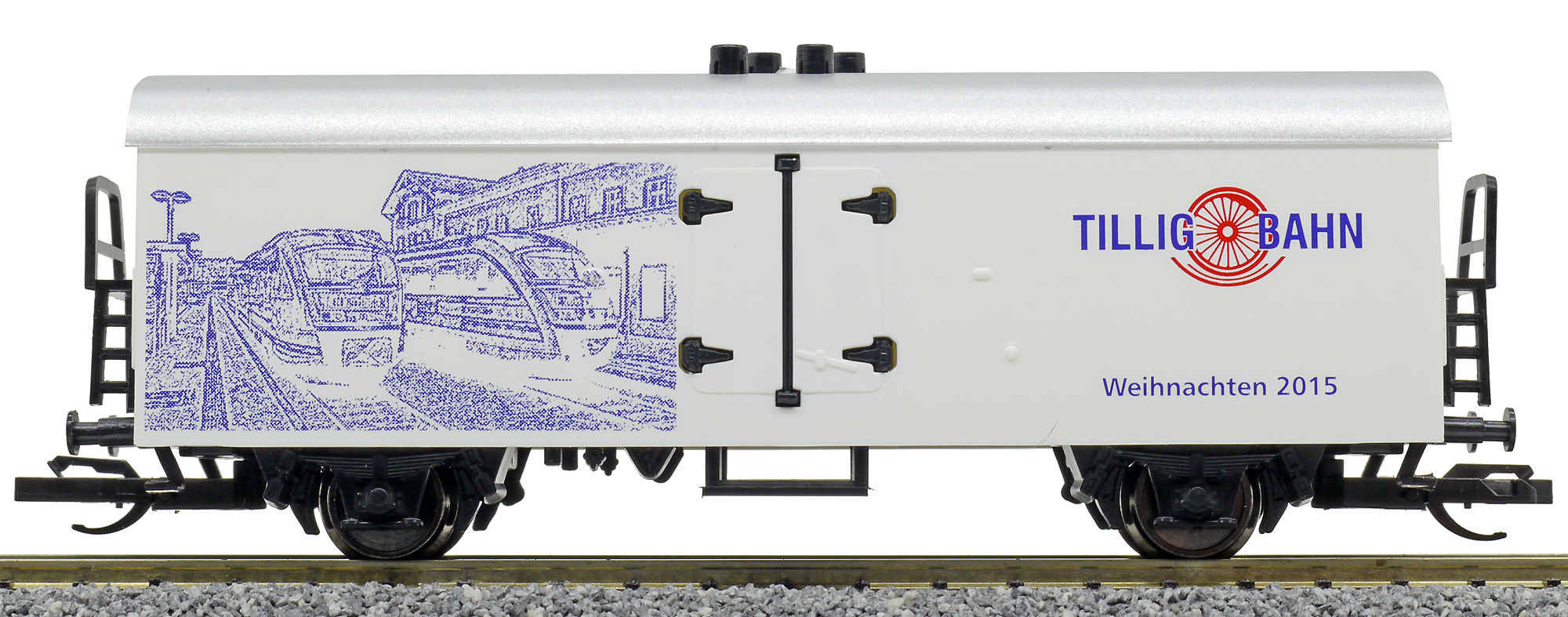 Popis   chladící vůz bílý s šedou střechou a s reklamním potiskem „Weihnachten 2015“