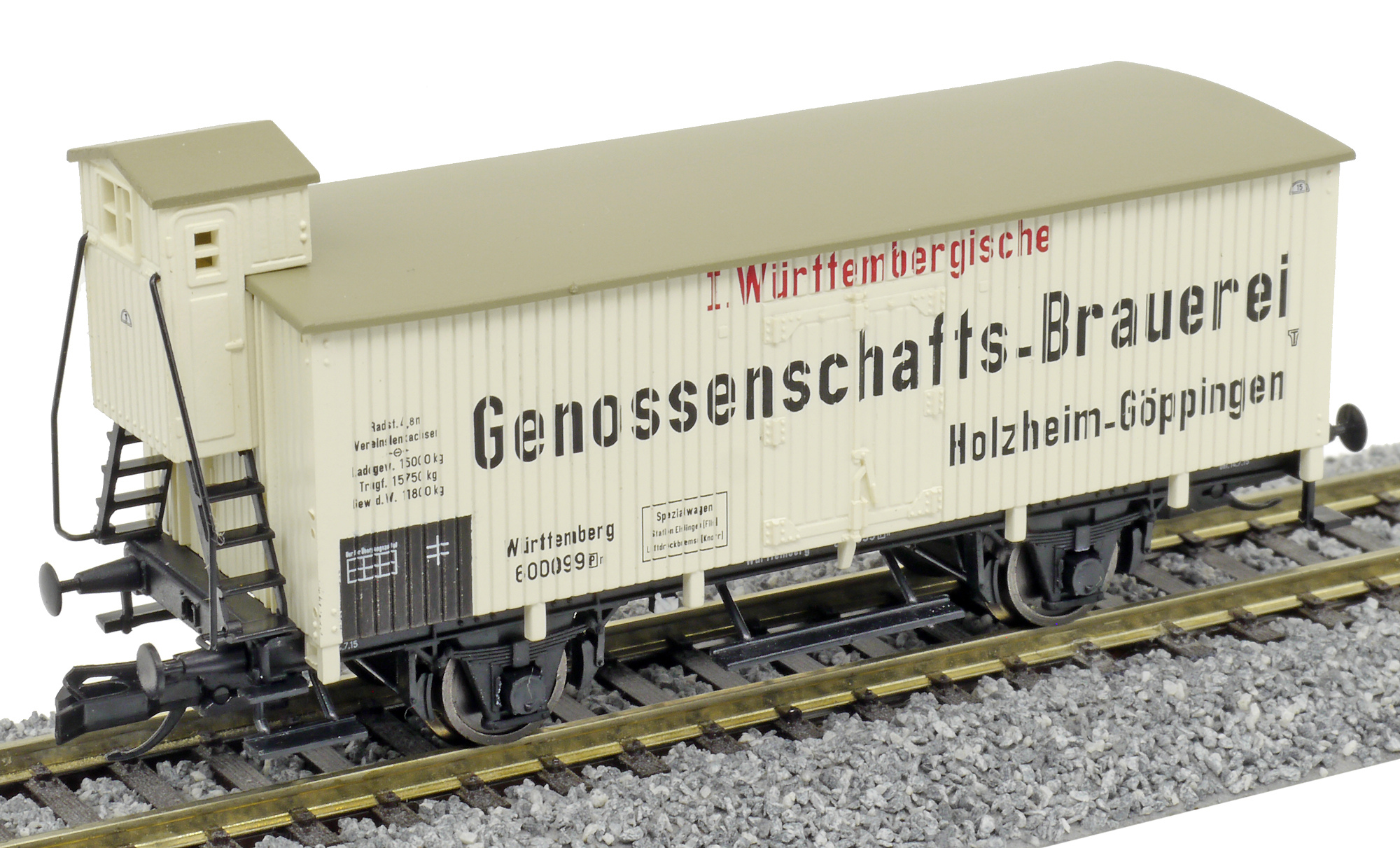| chladicí vůz bílý s šedou střechou „I. Württemb. Genossenschafts-Brauerei“ |