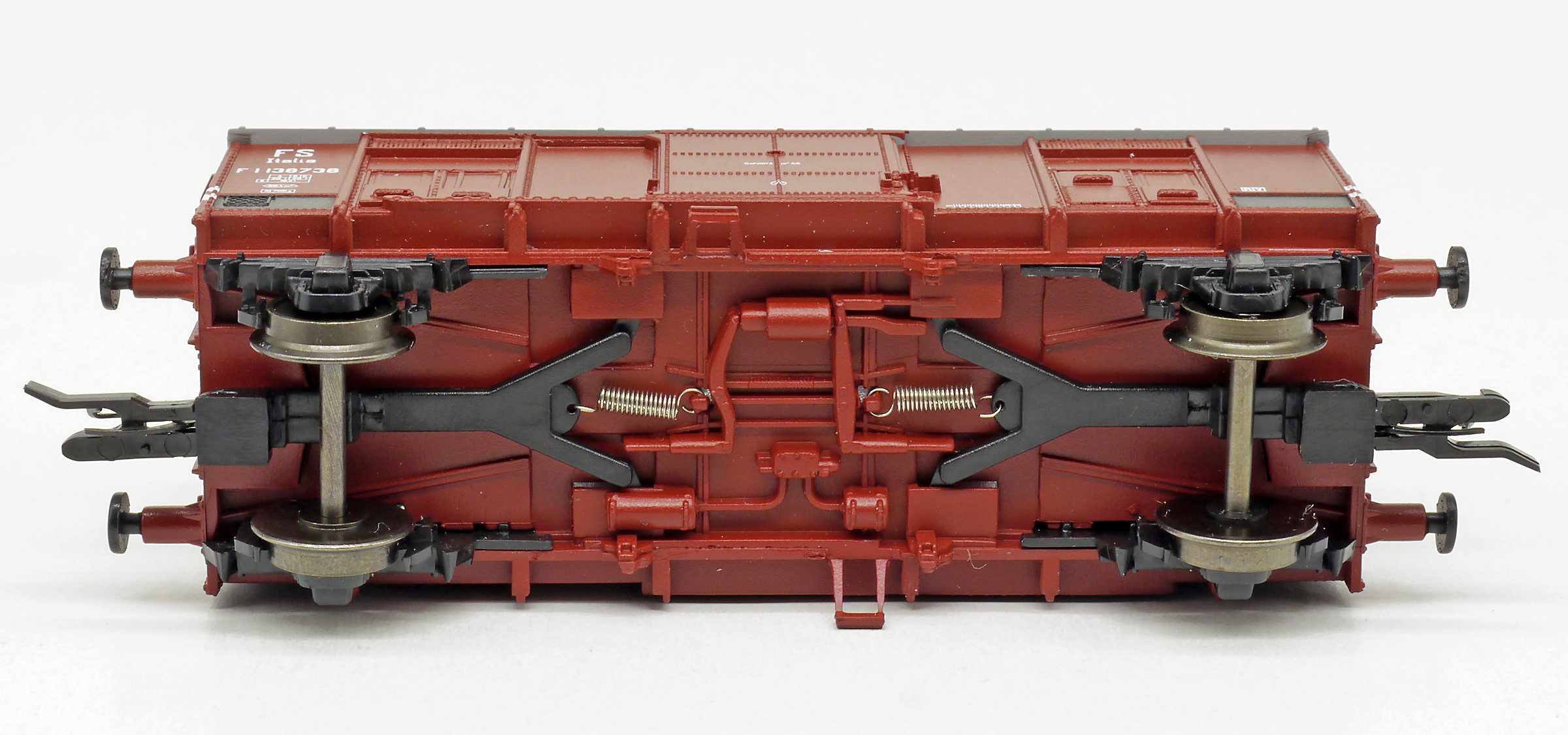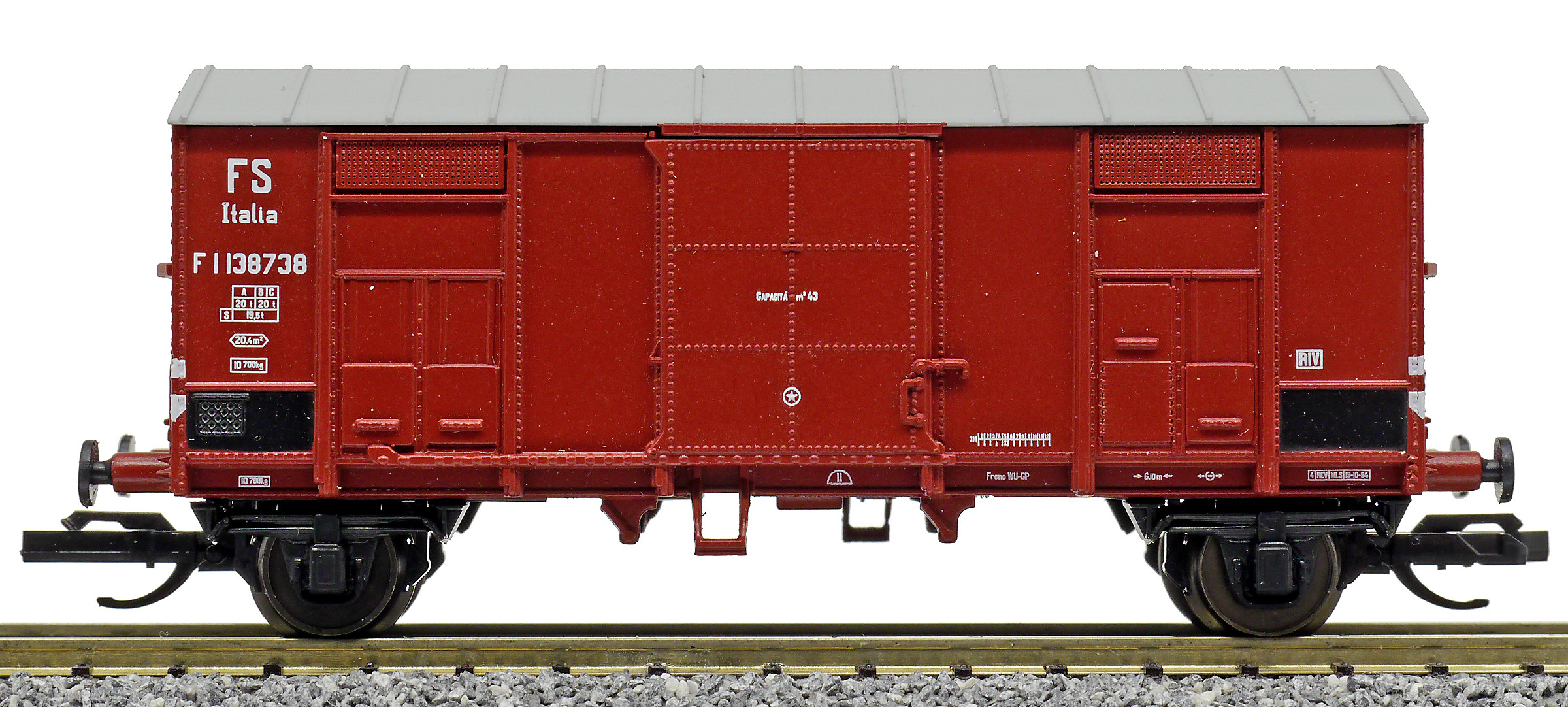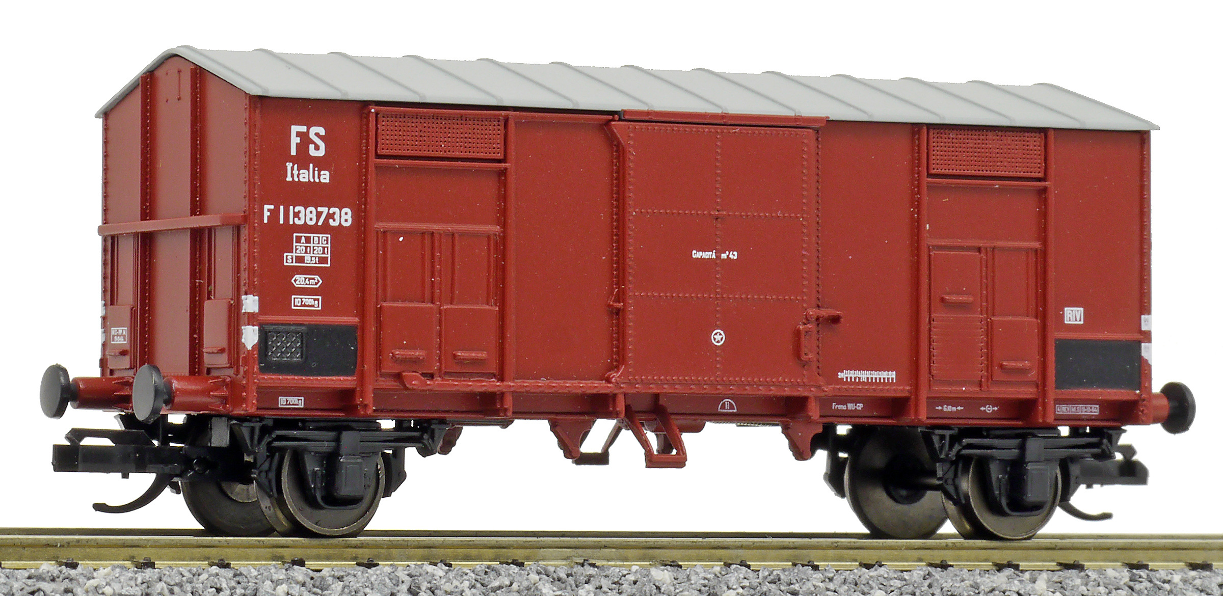 Popis   krytý nákladní vůz červenohnědý s šedou střechou