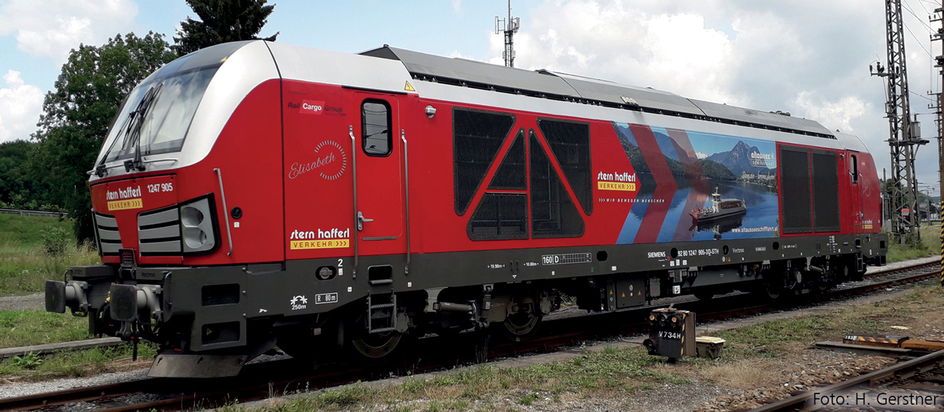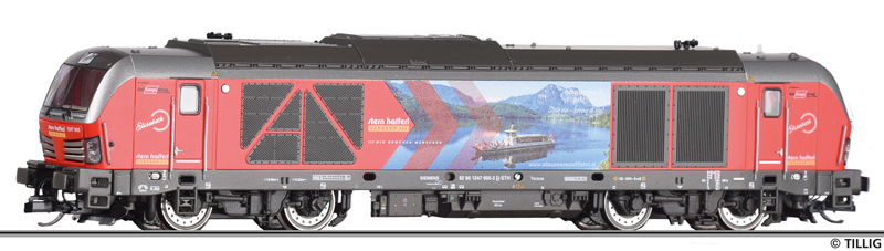 | dieselová lokomotiva s reklamním potiskem „Stern & Hafferl Verkehrsgesellschaft m.b.H.“ |