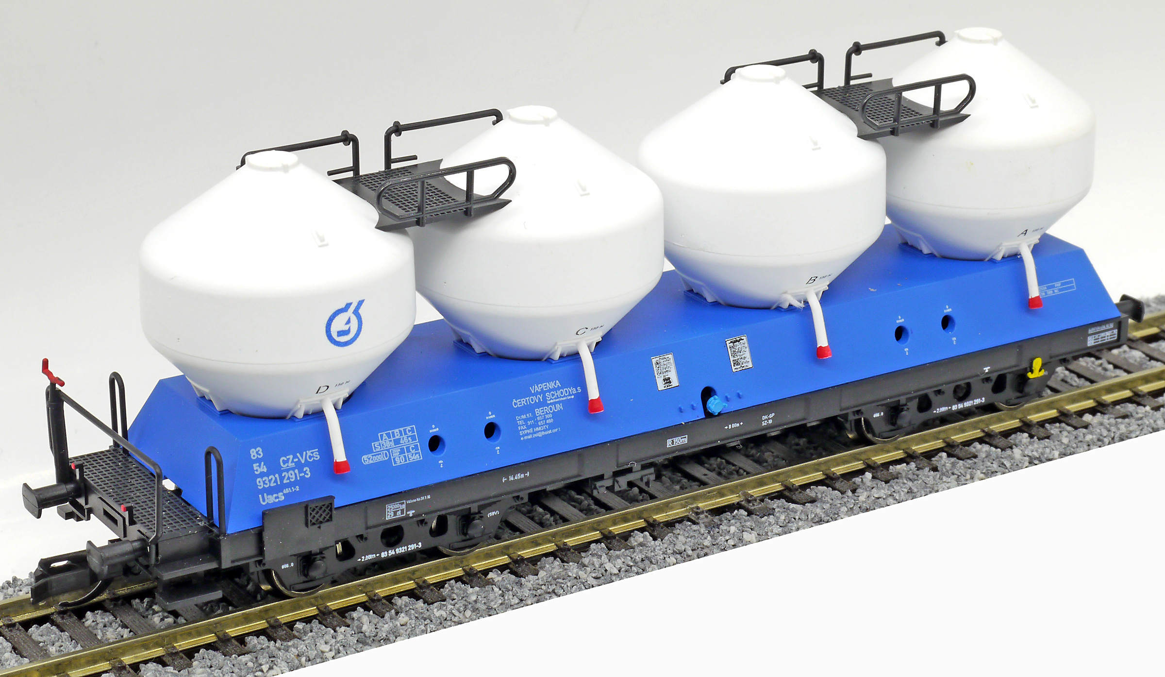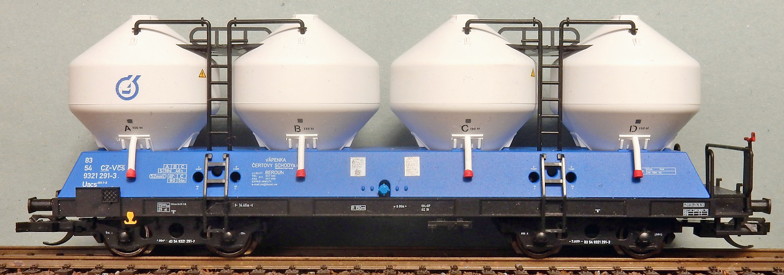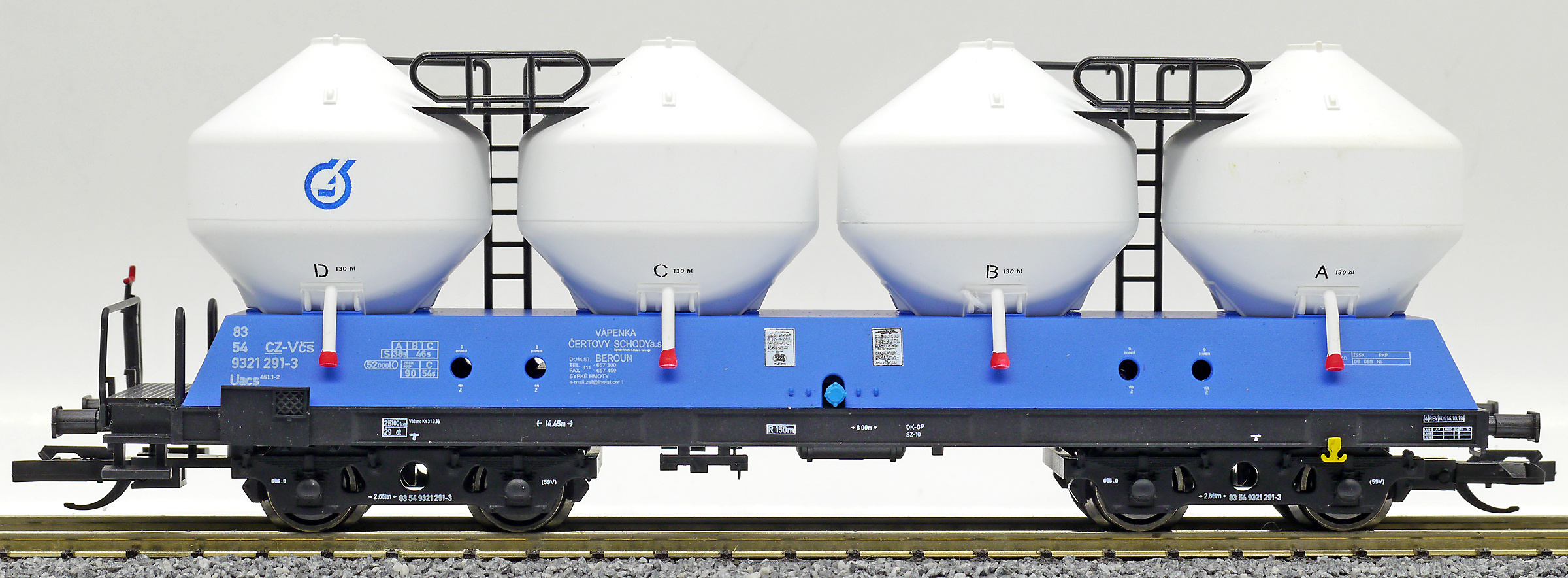 | nákladní samovýsypný vůz modrý s bílými nádobami „Vápenka Čertovy schody“ |