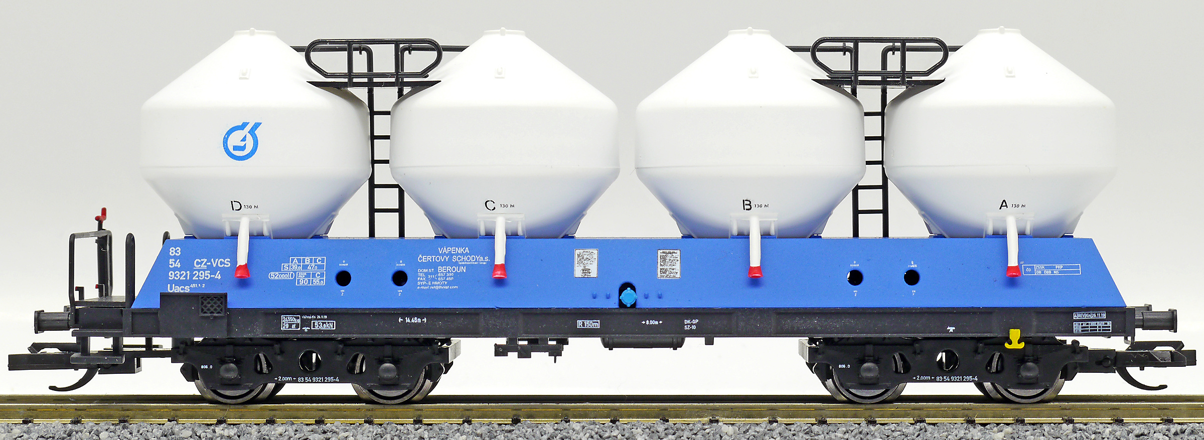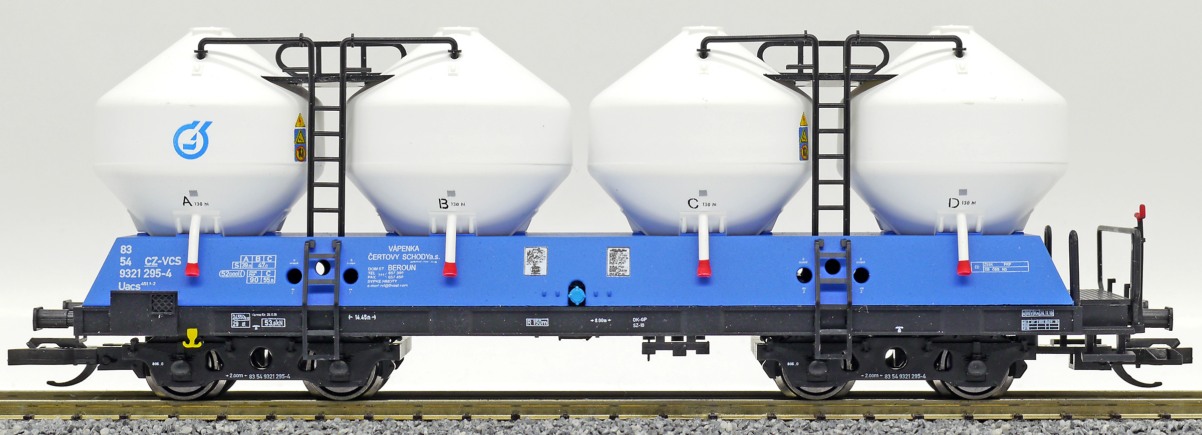 | nákladní samovýsypný vůz modrý s bílými nádobami „Vápenka Čertovy schody“ |