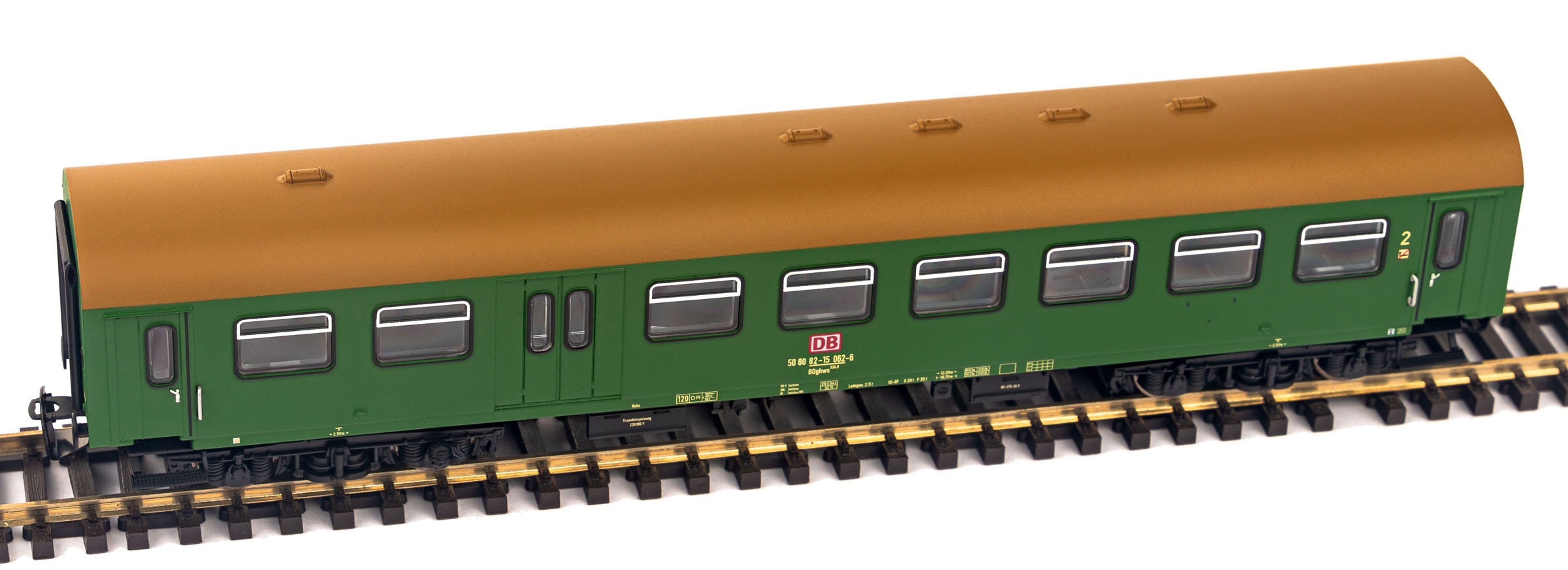 | rekonstruovaný osobní vůz zelený s olivovou střechou 2. tř. se zavazadlovým oddílem |