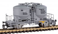 | samovýsypný šedý nádobový vůz na cement se záplatami |