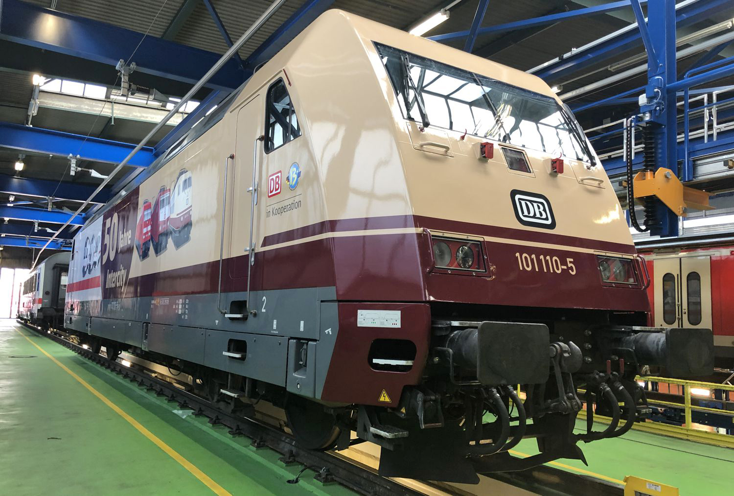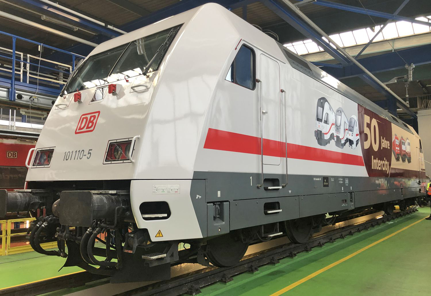 | elektrická lokomotiva s reklamNím potiskem „50 Jahre Intercity“ |