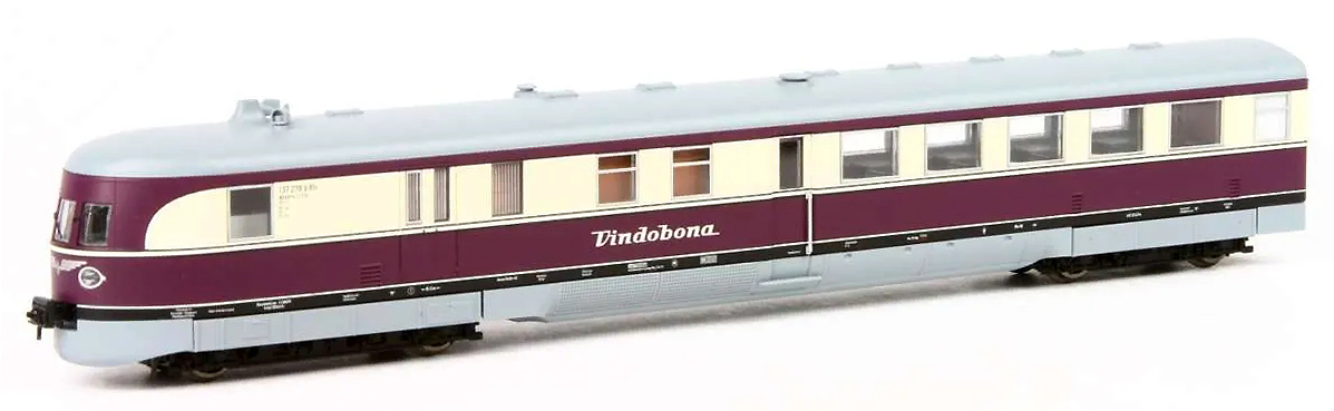 | fialovo-krémová s šedou střechou a pojezdem třídílná jednotka „Vindobona“ |