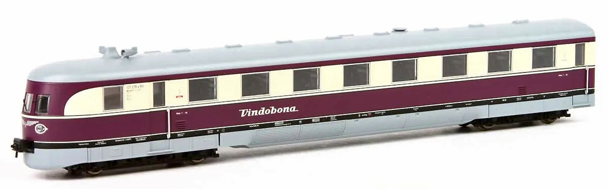 | fialovo-krémová s šedou střechou a pojezdem třídílná jednotka „Vindobona“ |