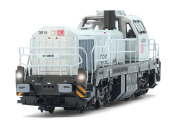 | dieselová lokomotiva světle šedá, tmavě šedý rám a pojezd |