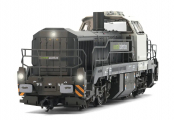 | dieselová lokomotiva tmavě šedé nátěru, světle šedá kabina |