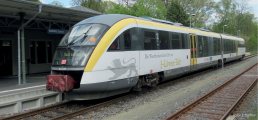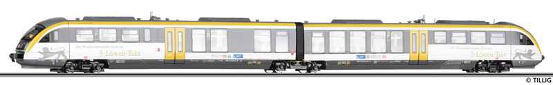Popis   motorová jednotka s reklamním potiskem „3-Löwen-Takt“