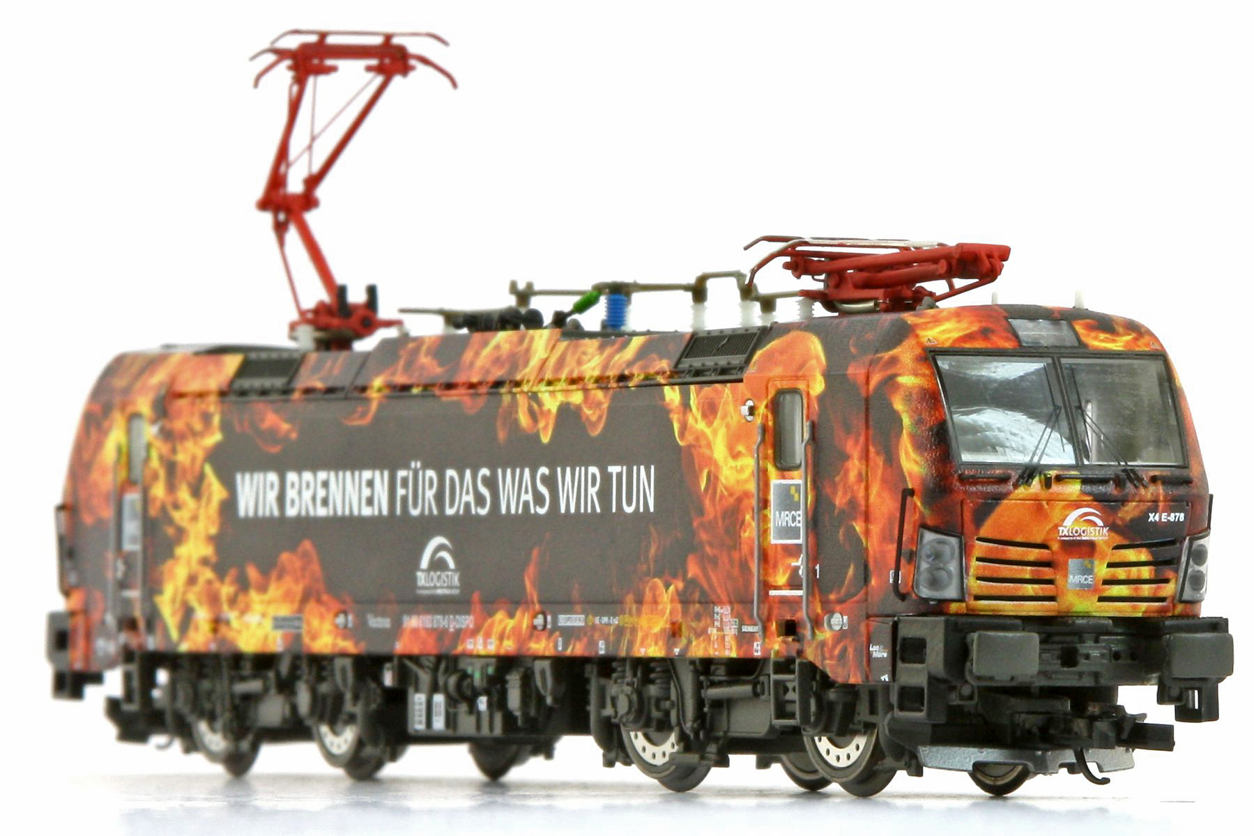 | elektrická lokomotiva s reklamním potiskem „Flammenlok“ |