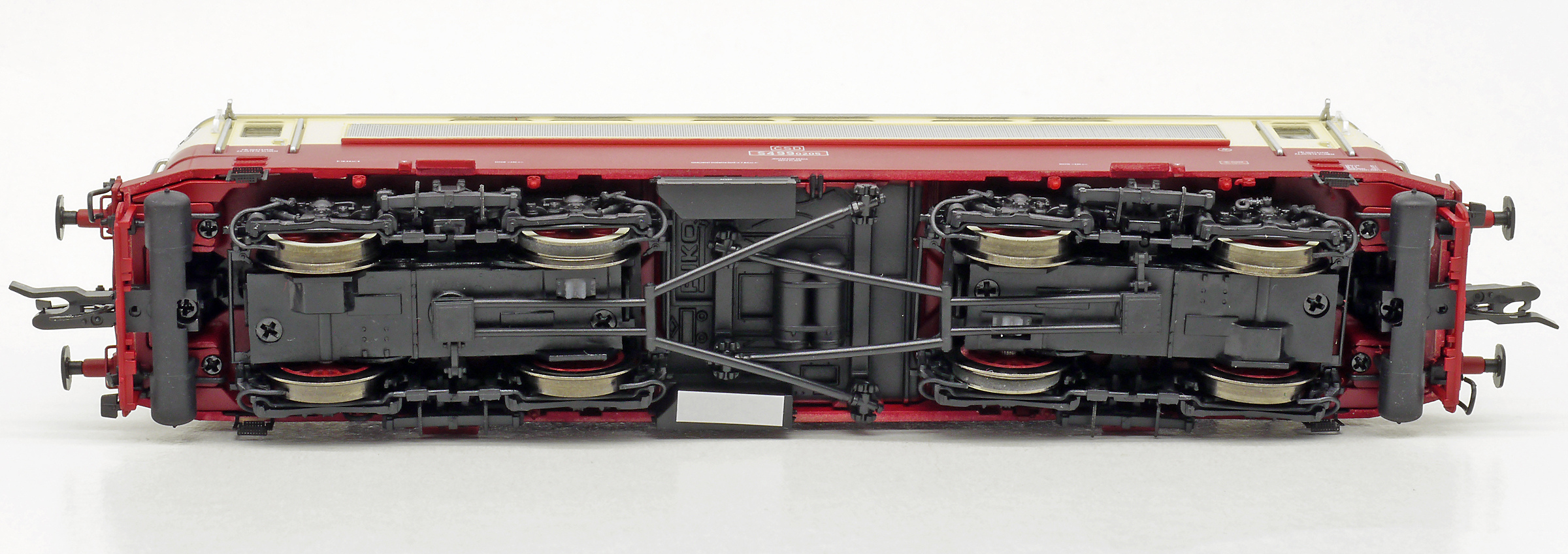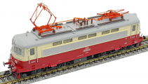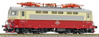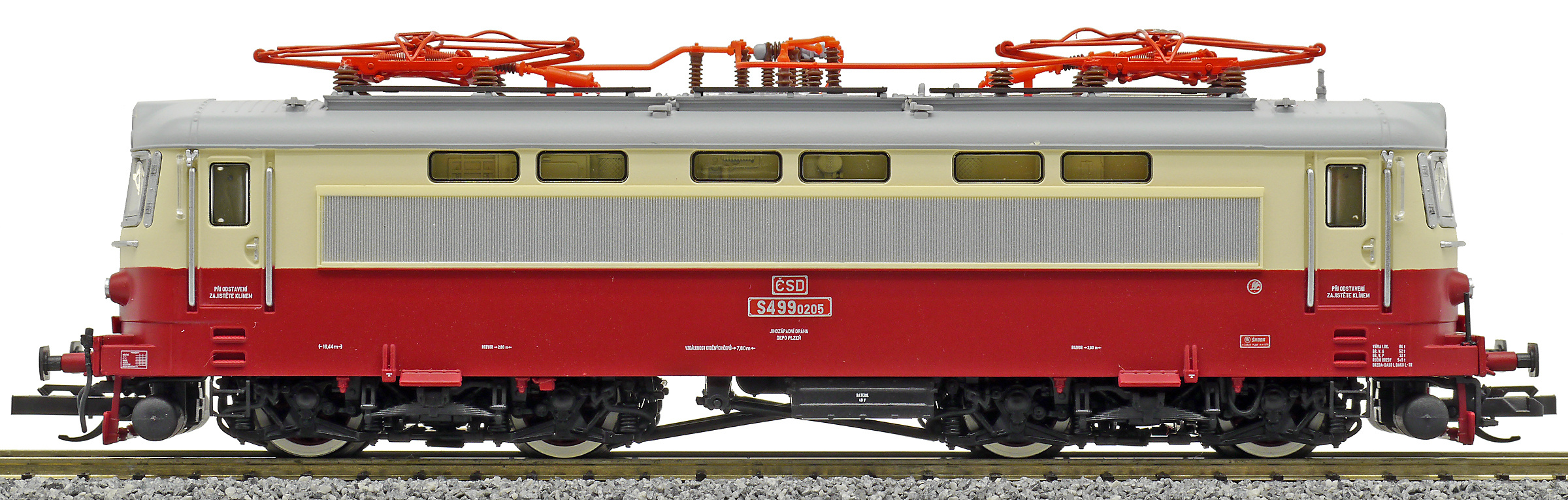 Popis   elektrická lokomotiva červená-slonová kost, šedá střecha a červené pantografy