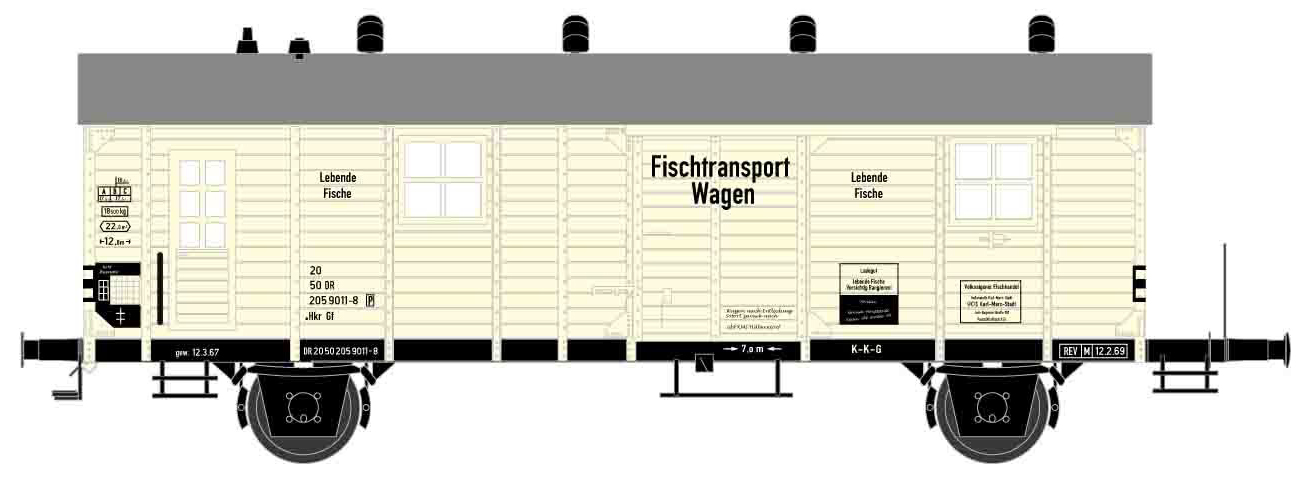 | chladící nákladní vůz béžový na přepravu ryb „Kraftwerksfische-III“ |