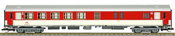 | rychlíkový vůz červený-bílý 2. tř. se zavazadlovým oddílem |