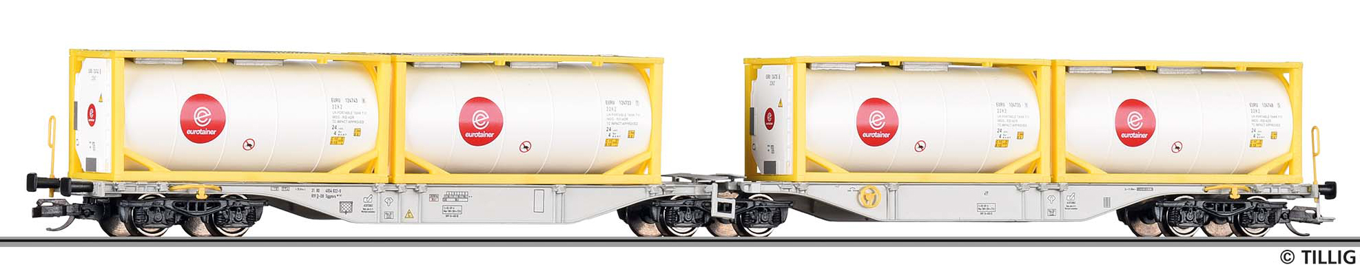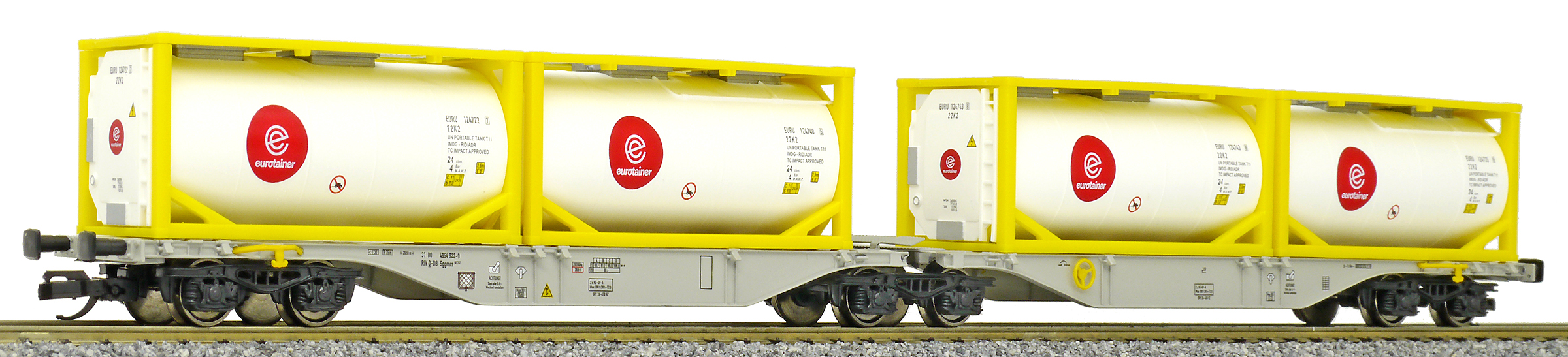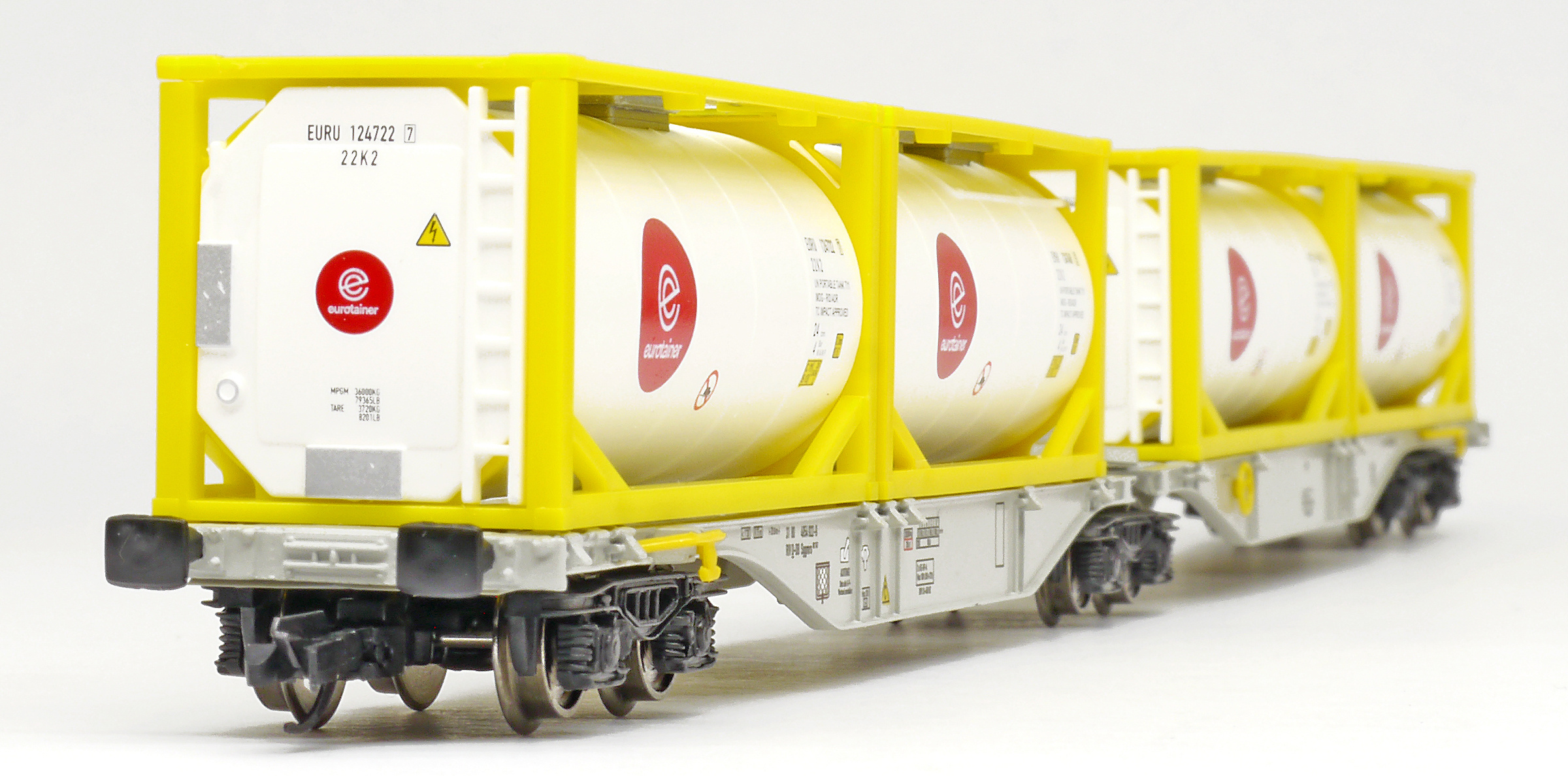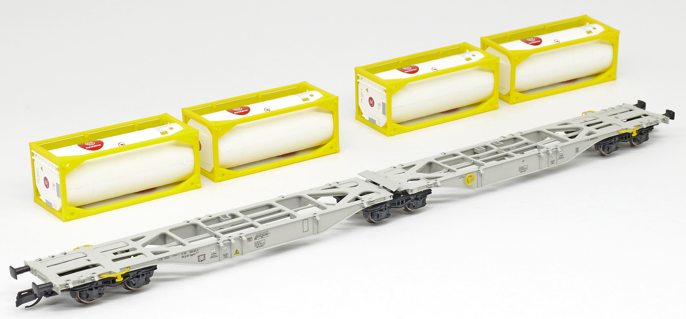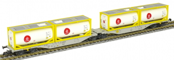 | dvoudílný kontejnerový vůz šedý se čtyřmi tankkontejnery 20' |