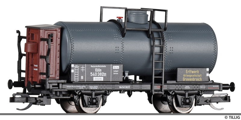 | kotlový vůz tmavě šedý s brzdařskou budkou „Erftwerk AG, Grevenbroich“ |