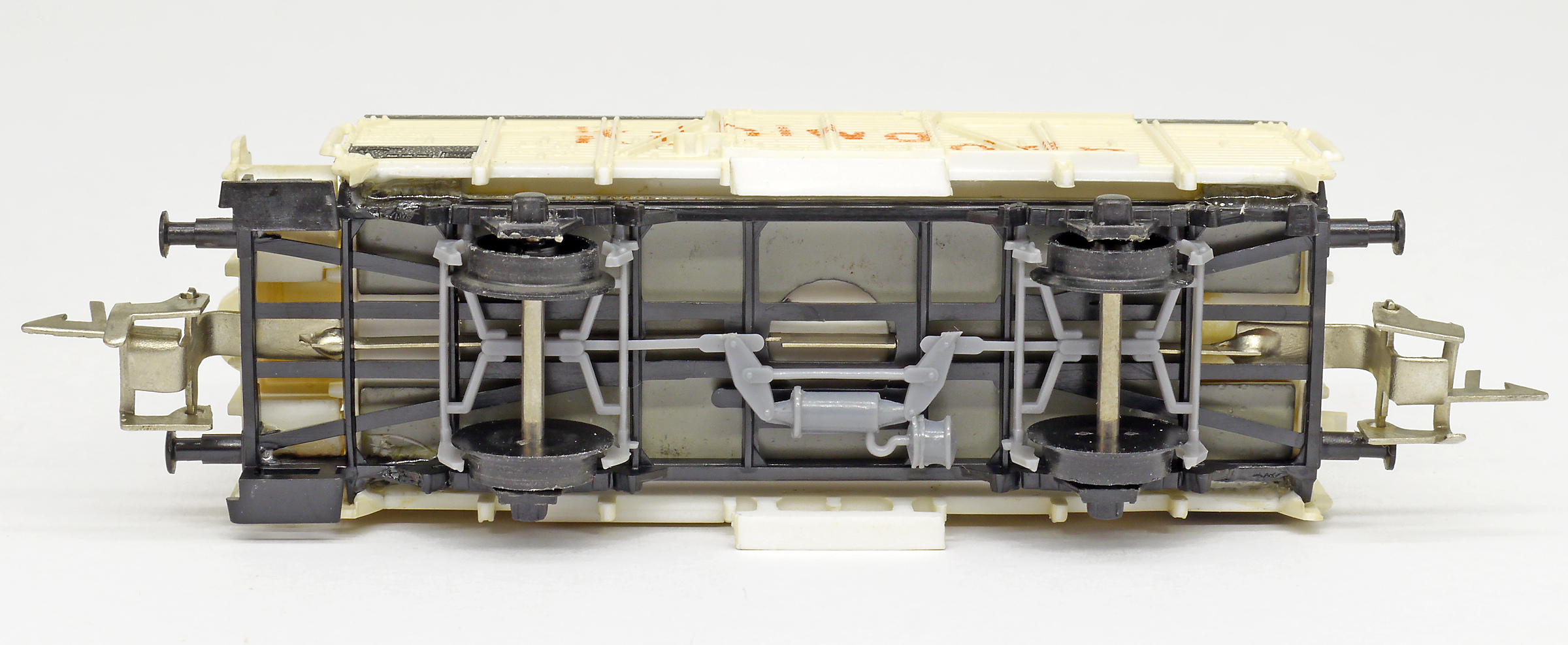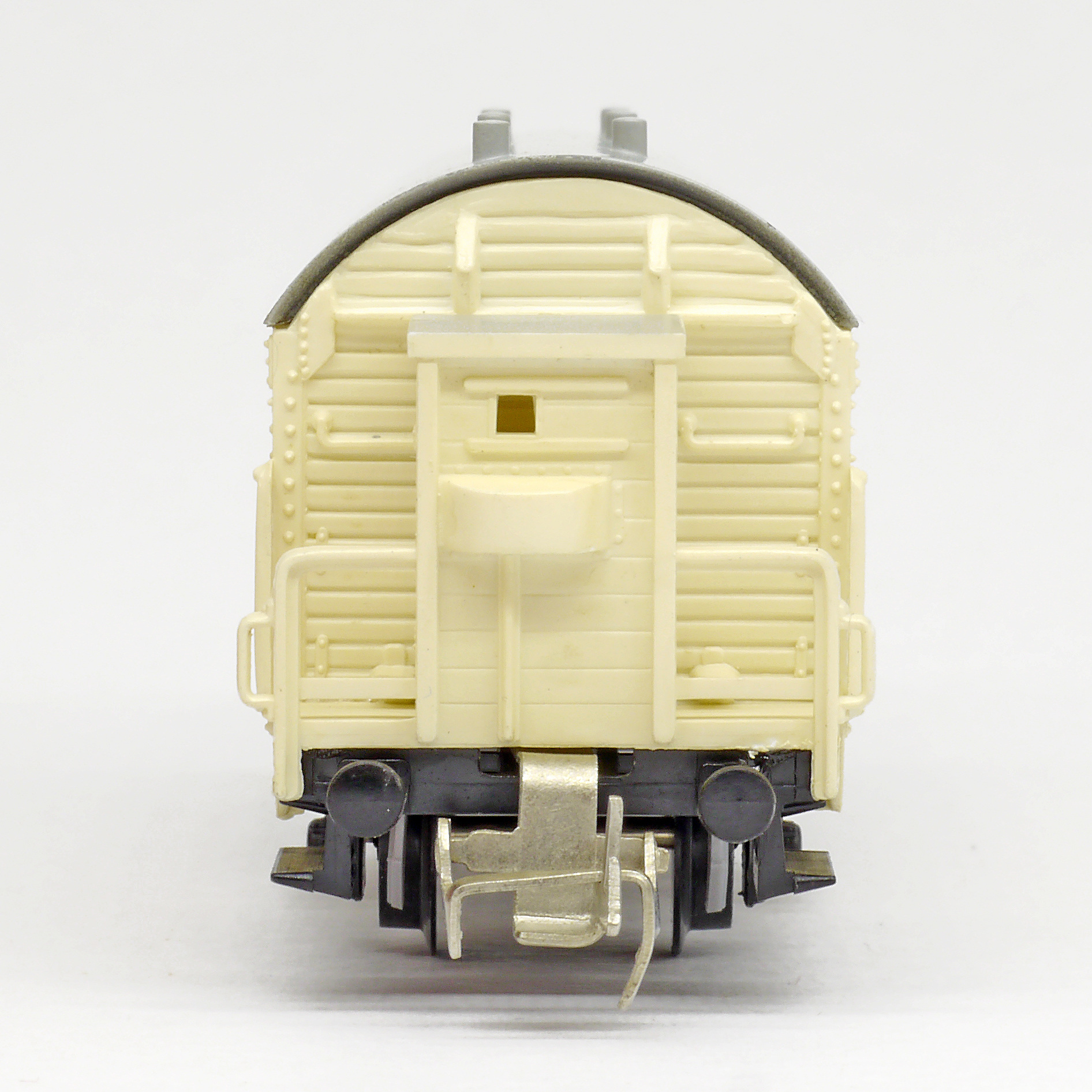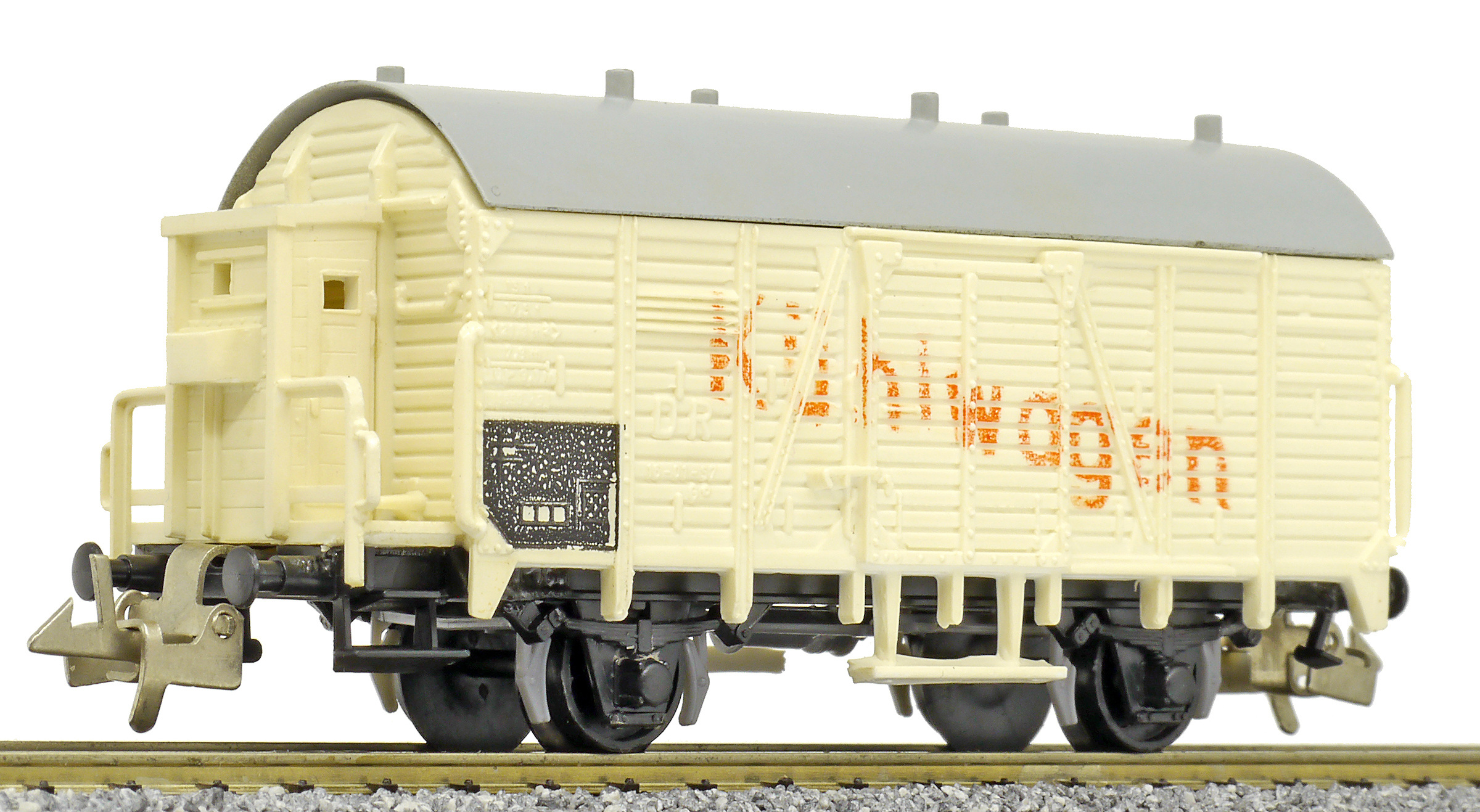 | nákladní chladící vůz světle krémý s šedou střechou „Kühlwagen“ a s brzdařskou budkou |