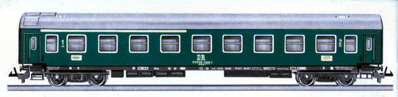 | rychlíkový vůz zelený s šedou střechou 1./2. tř. |