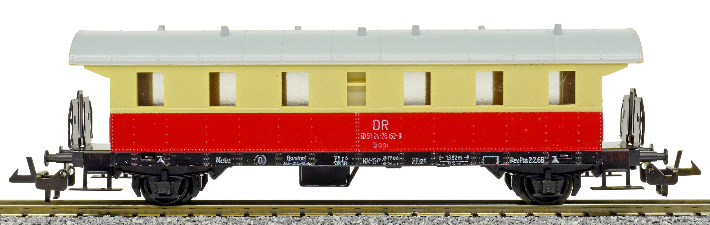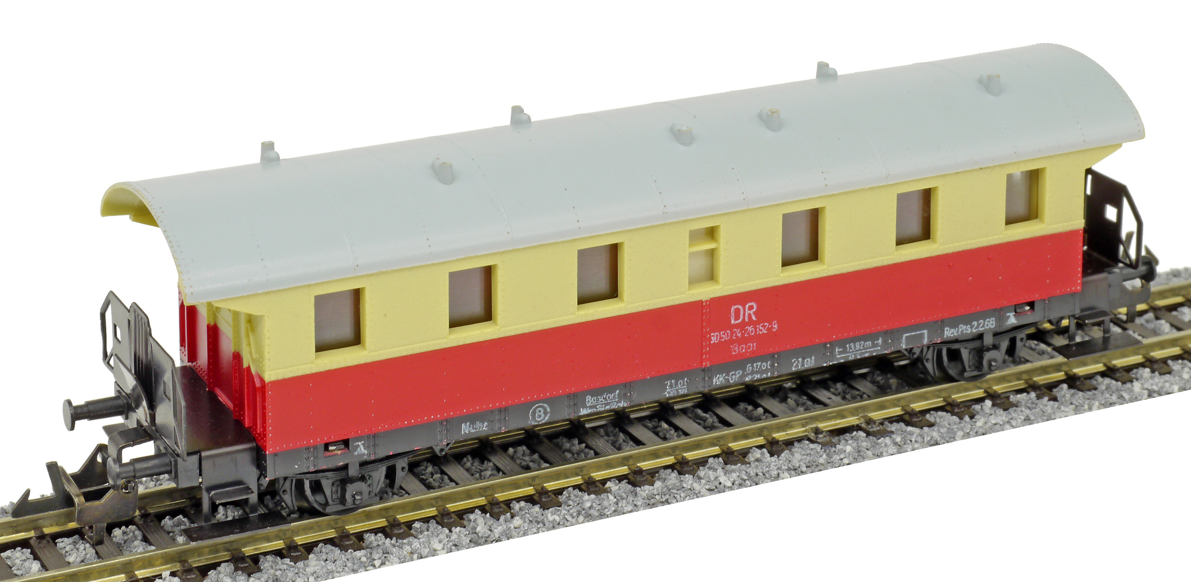 | osobní vůz červený-krémový s šedou střechou 2. tř. |