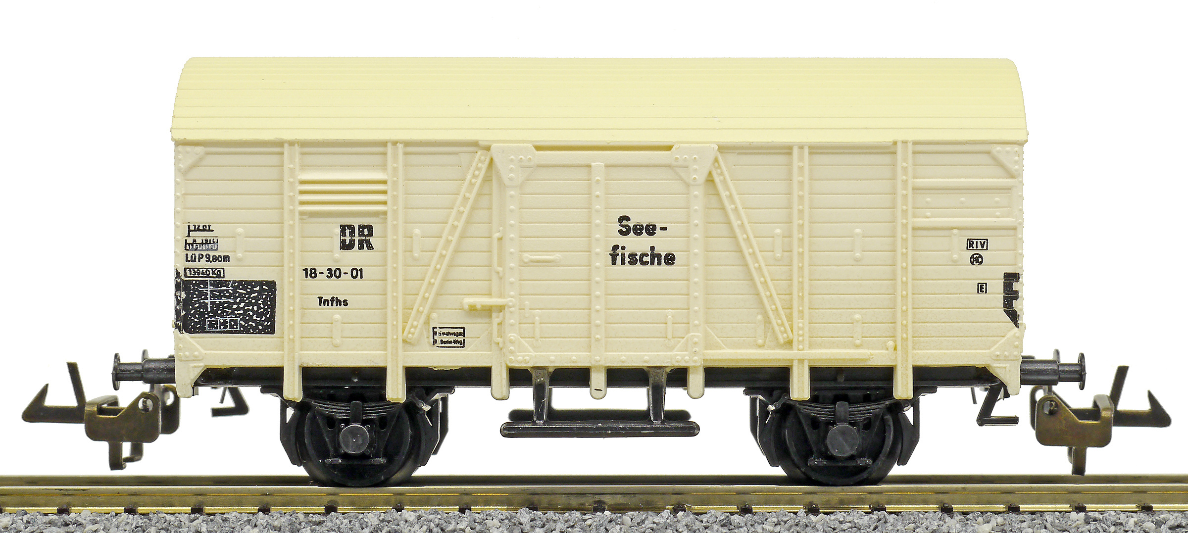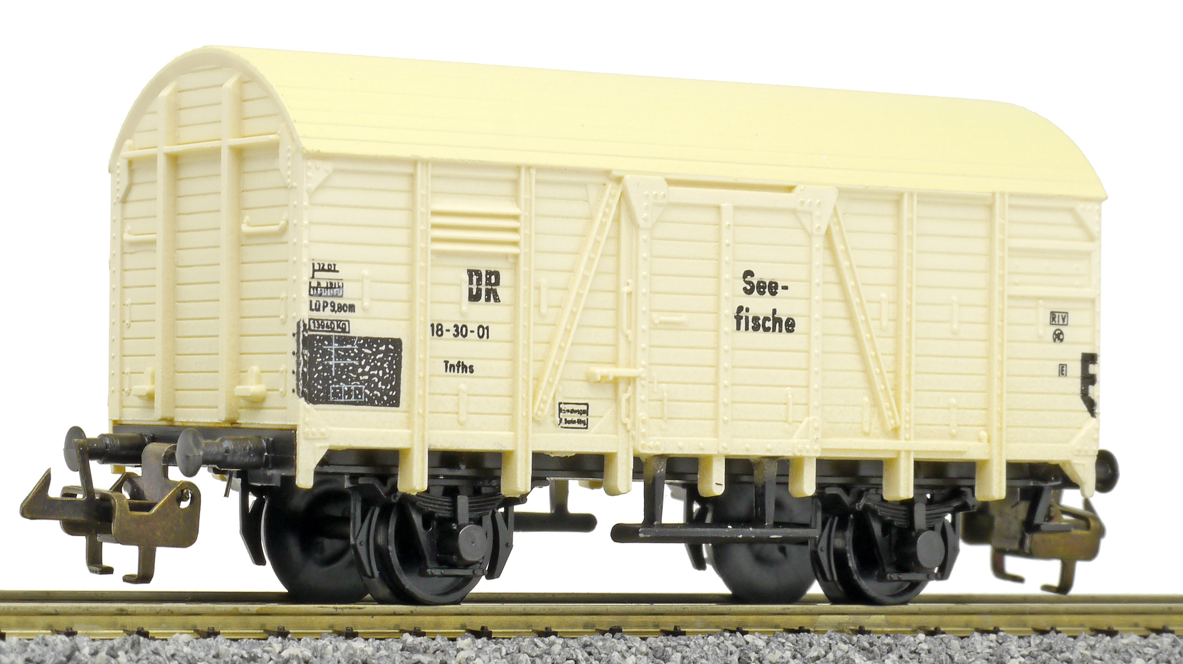 | nákladní chladící vůz bílý s šedou střechou „Seefische“ |