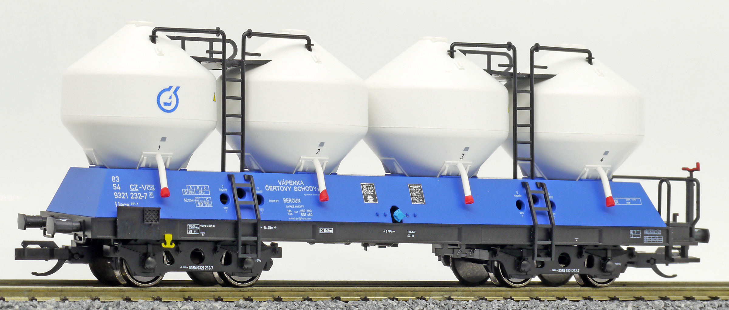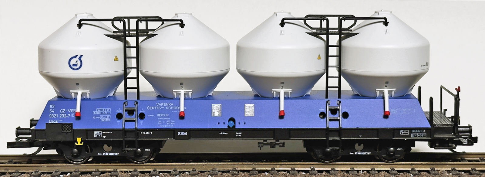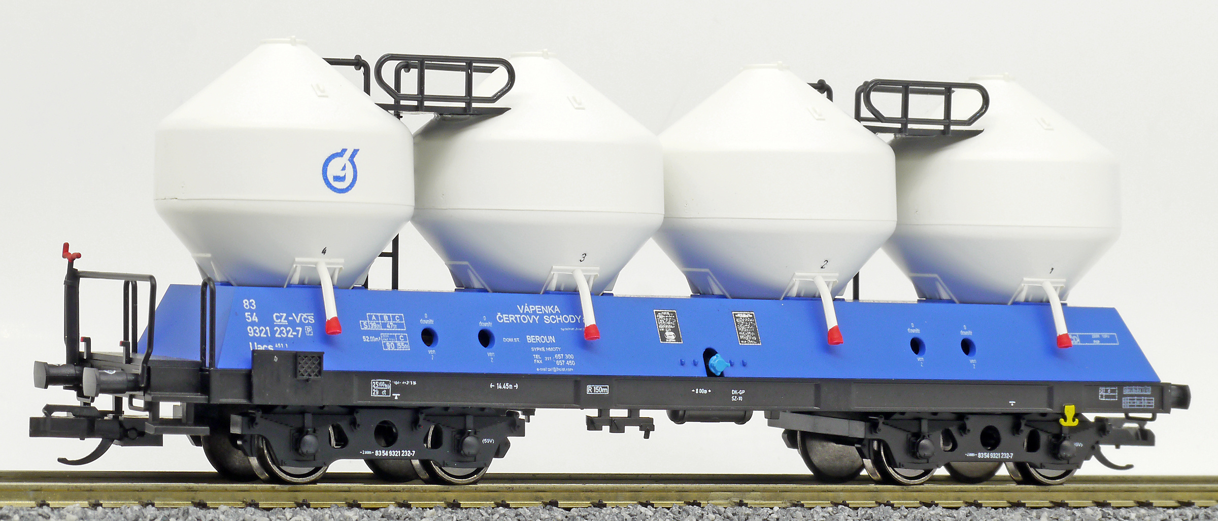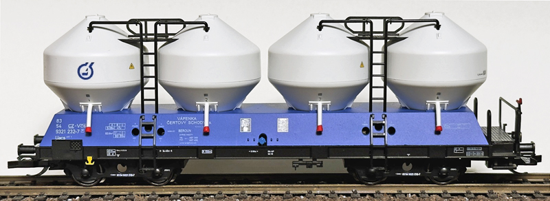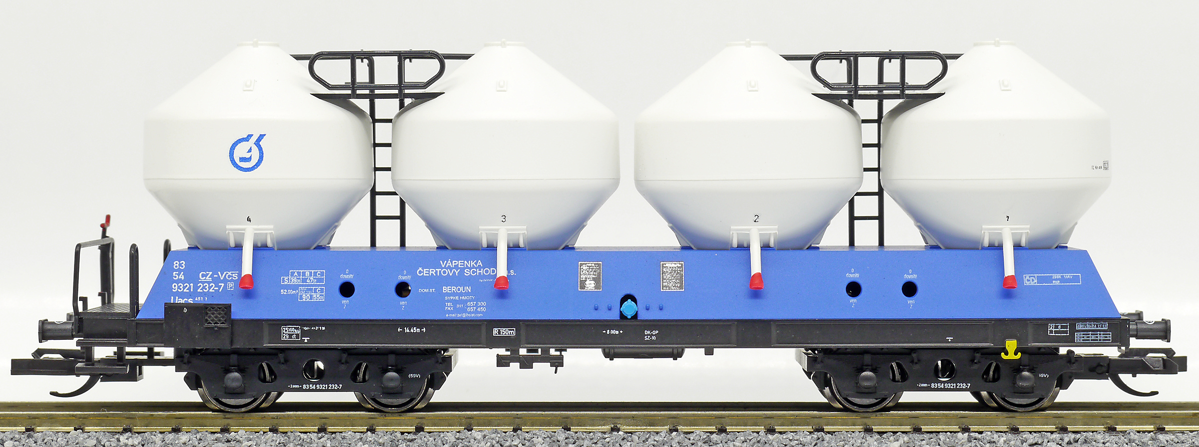 | nákladní samovýsypný vůz modrý s bílými nádobami „Vápenka Čertovy schody“ |