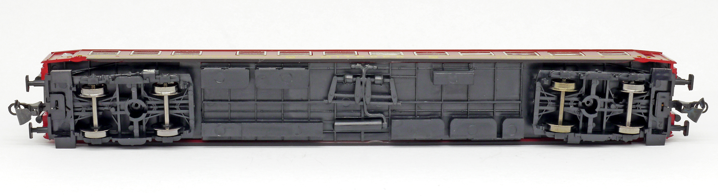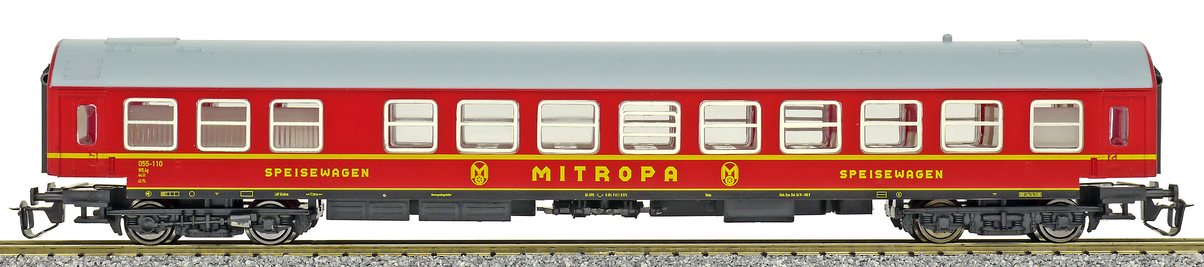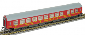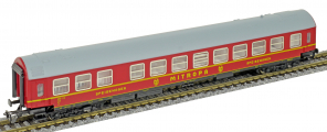 | jídelní vůz červený s šedou střechou „MITROPA“ |