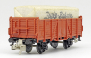 | otevřený nákladní vůz červenohnědý nebo zelený s plachtou |