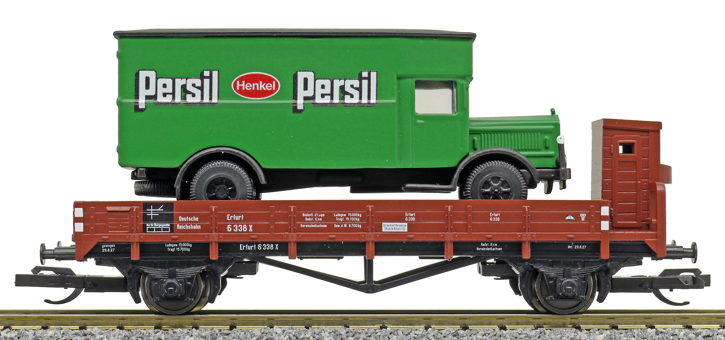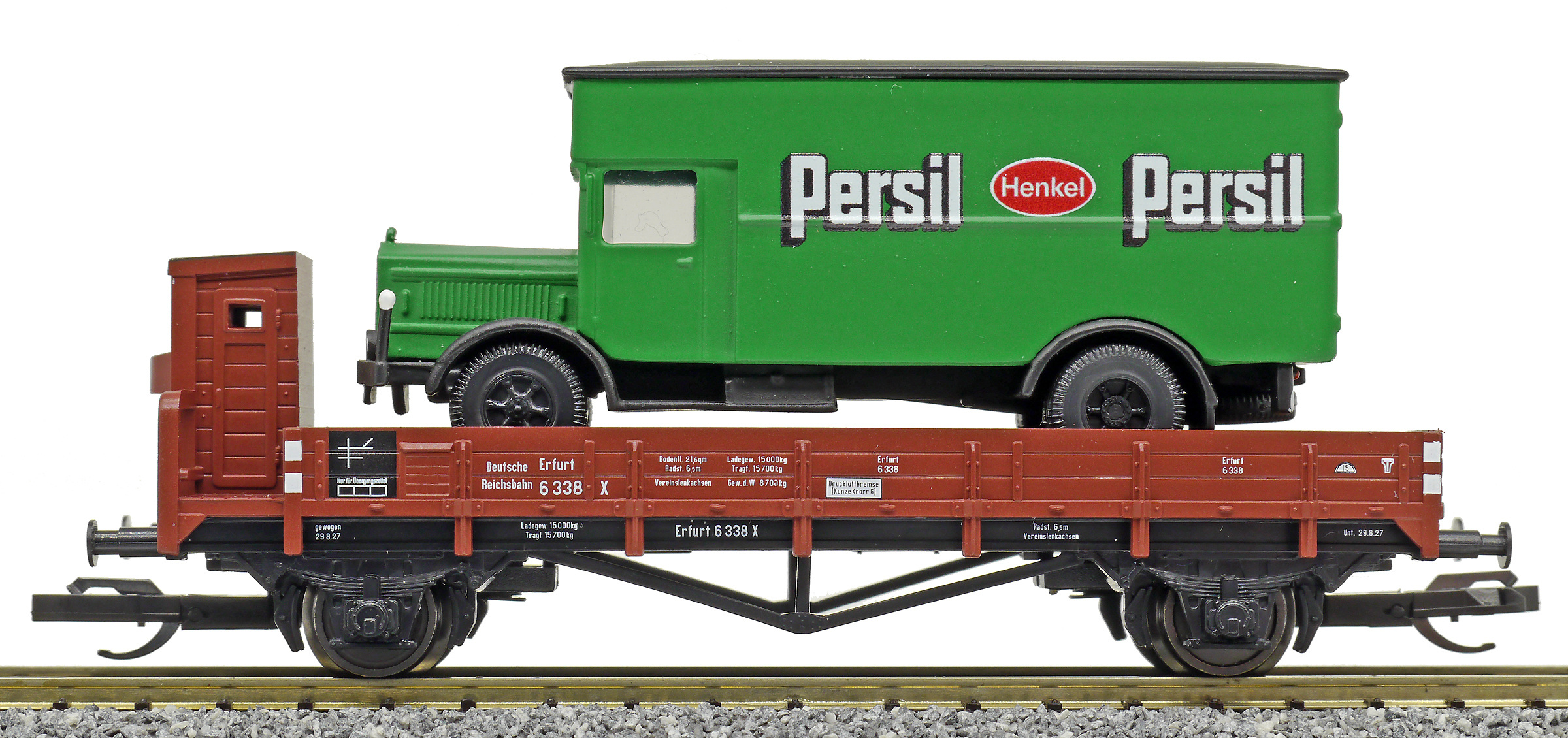 | nízkostěnný nákladní vůz červenohnědý s nákladem vozu „Persil“ |