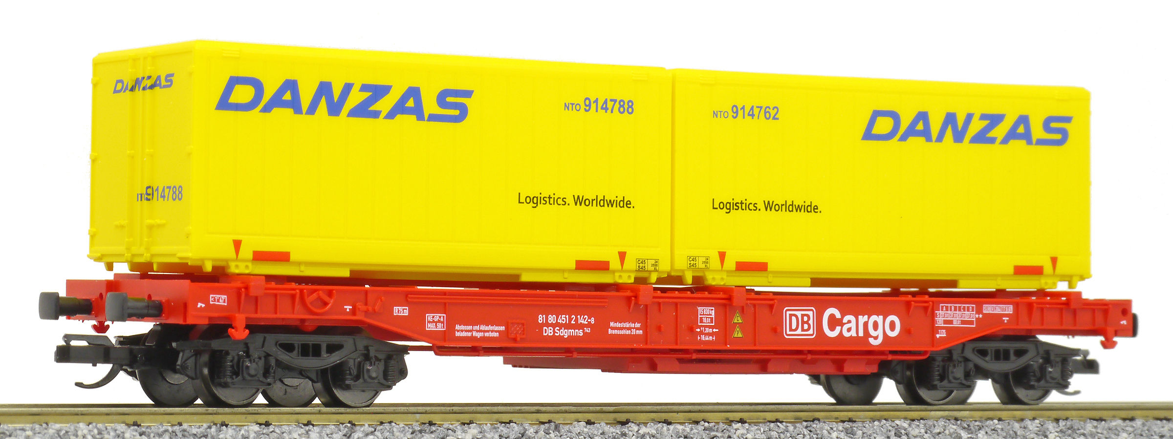 | kapsový nákladní vůz červený se dvěma výměnnými kontejnery „Danzas“ |