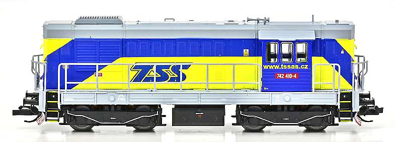 | dieselová lokomotiva modrá-žlutá v barevném schematu „TSS“ |