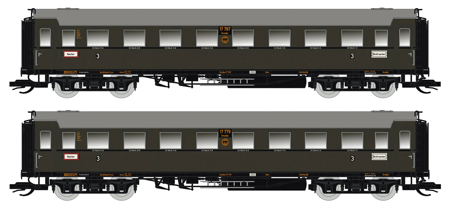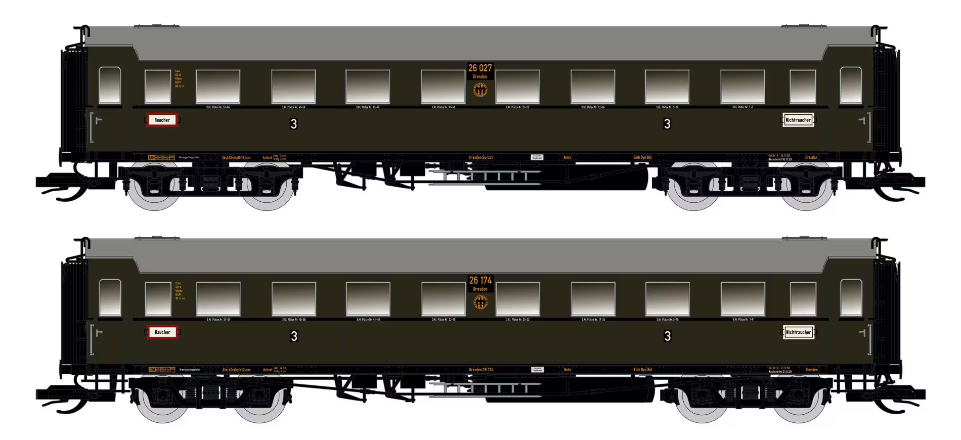 | set dvou osobních oddílových vozů 3. tř. |