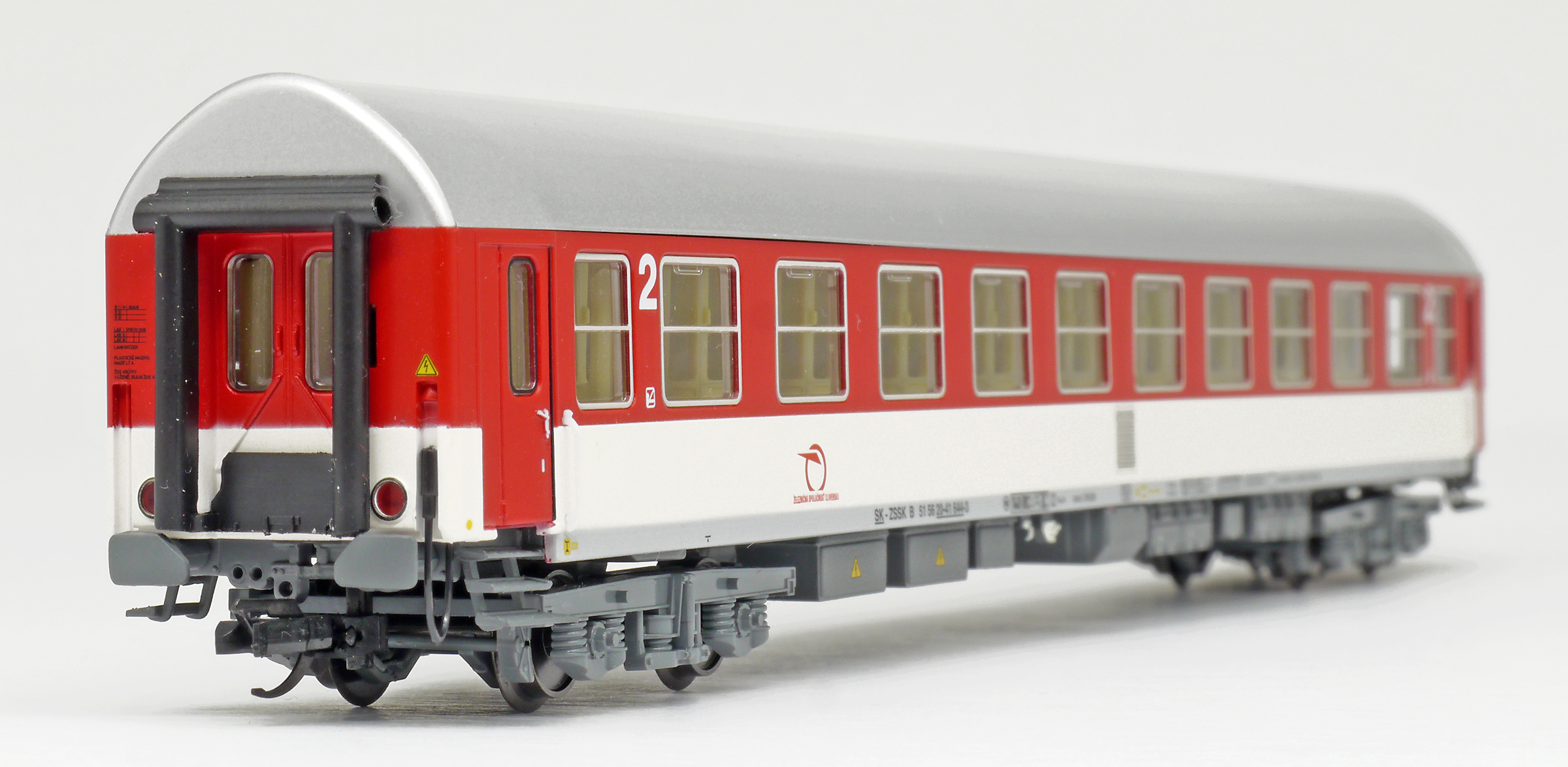 | rychlíkový vůz červený-bílý s šedou střechou 2. tř. |