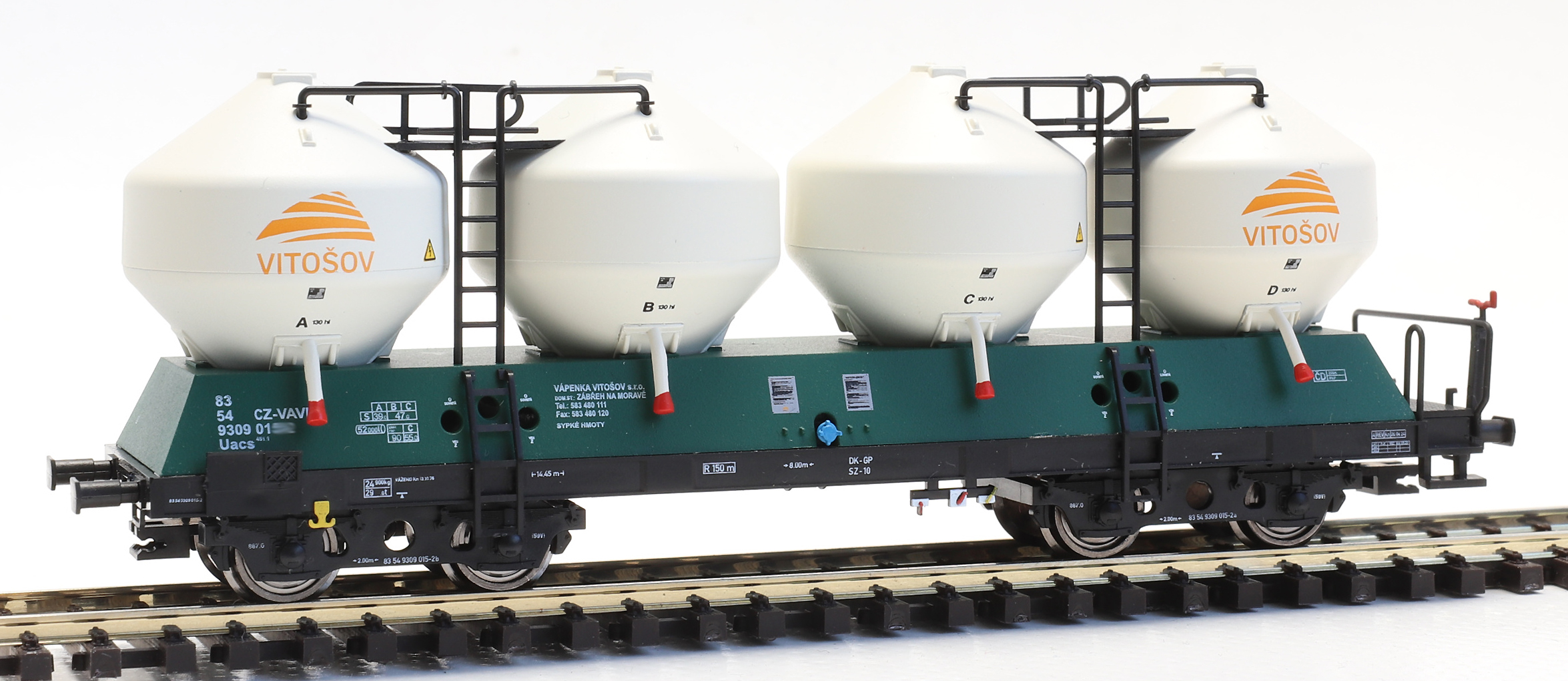 | nákladní samovýsypný vůz zelený s bílými nádobami „VÁPENKA VITOŠOV“ |