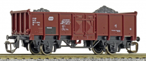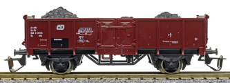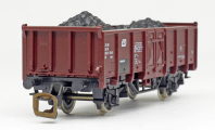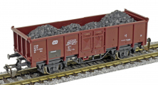 | otevřený nákladní vůz červenohnědý ložený uhlím |