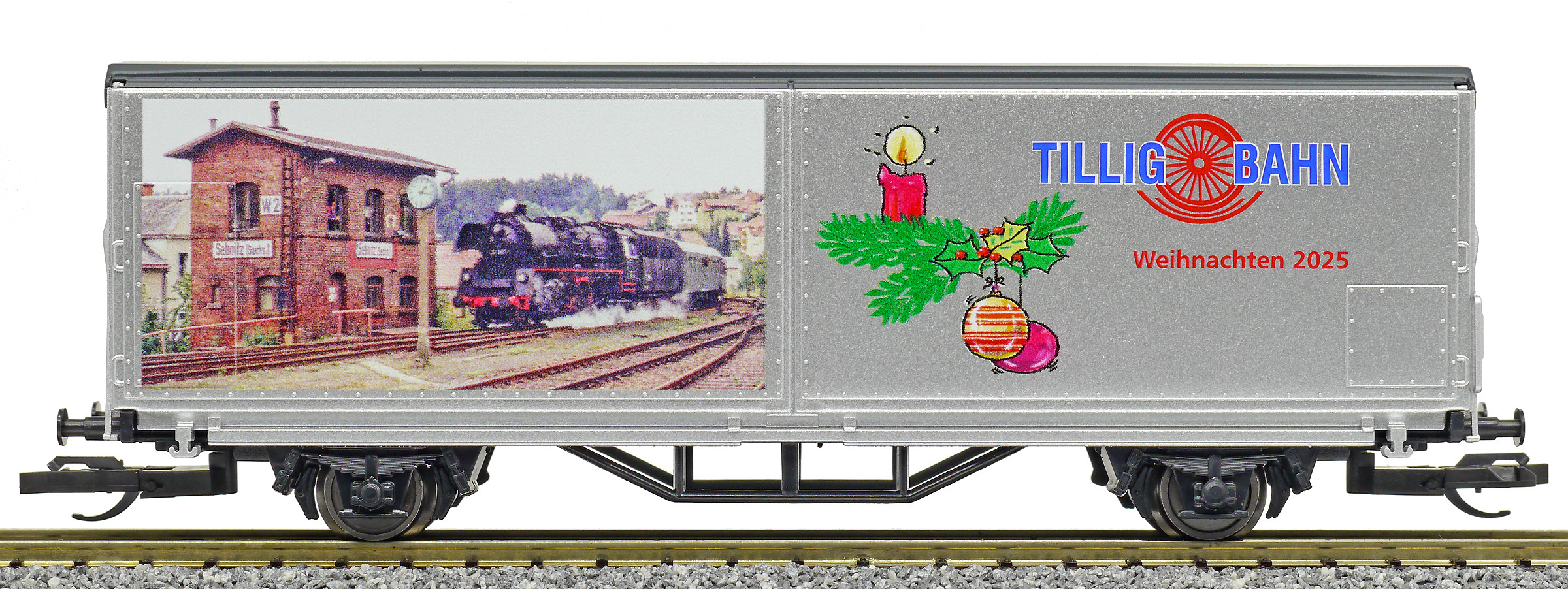 Popis   nákladní vůz s posuvnými bočnicemi světle stříbrný „Danke 2025“