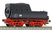 Popis   parní lokomotiva černá s kouřovými plechy, červený pojezd, vanový tendr