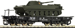 | plošinový nákladní vůz černý ložený tankem PT 76 |
