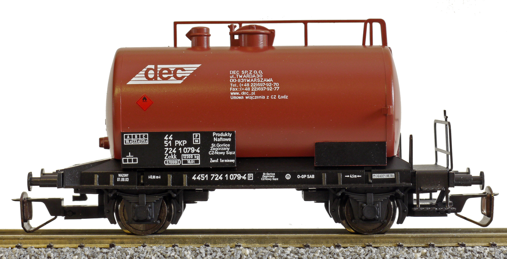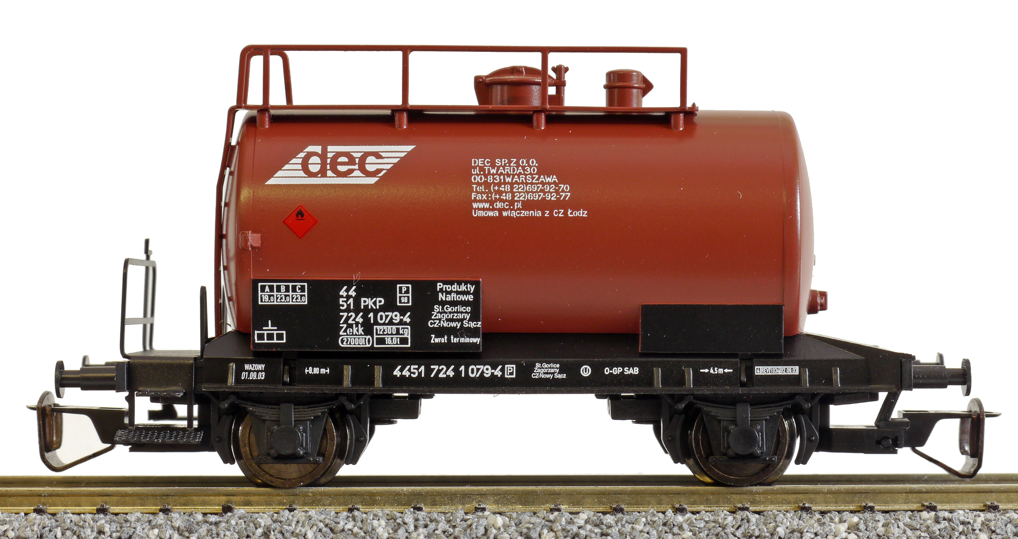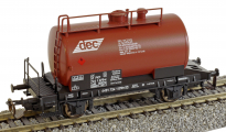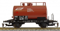 | cisternový vůz tmavě červený s černým rámem „DEC“ |