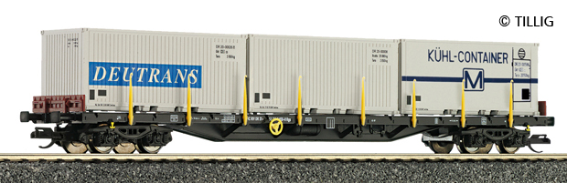 | nákladní plošinový vůz černý se třemi kontejnery 20' |