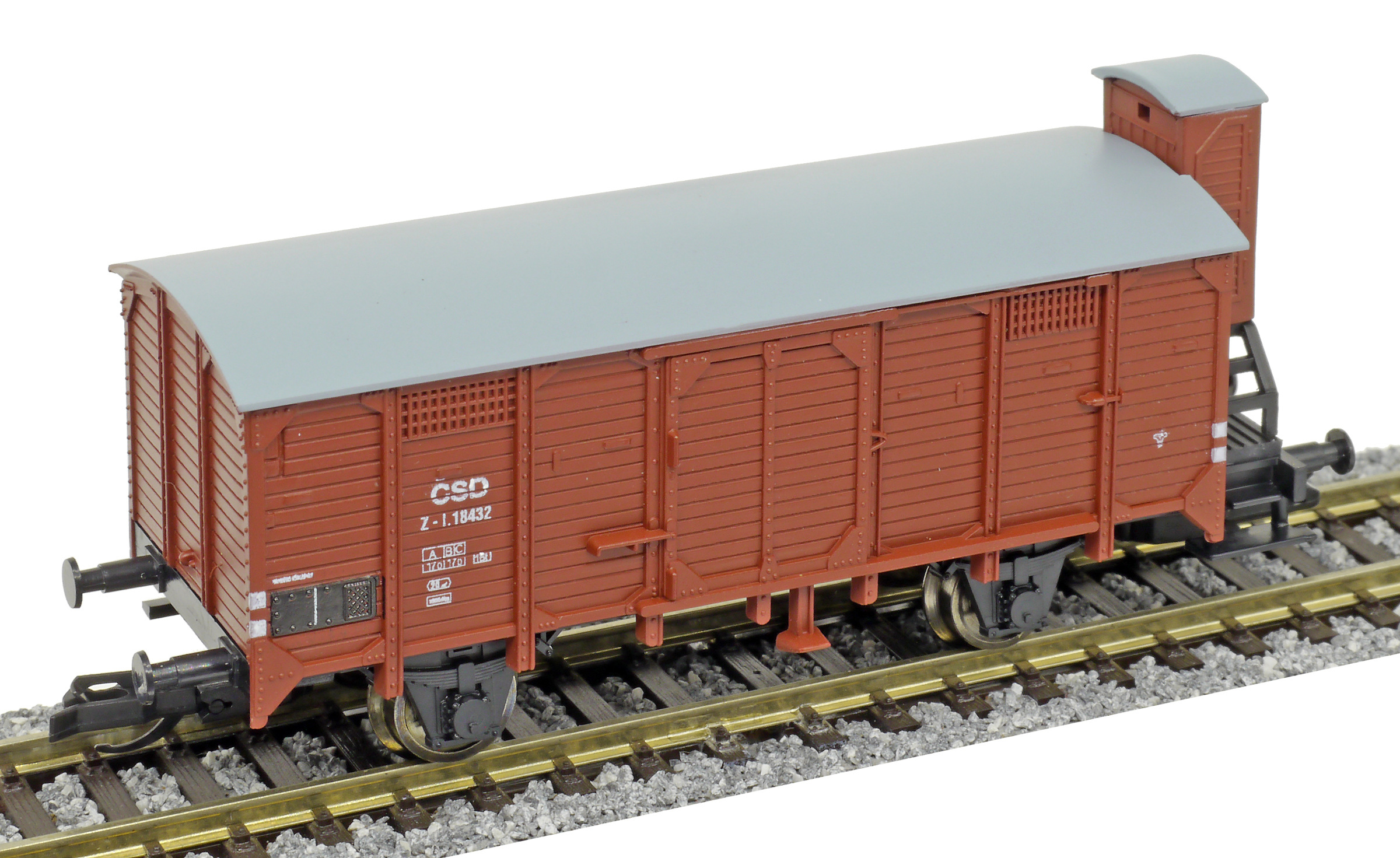 Popis   krytý nákladní vůz červenohnědý s brzdařskou budkou
