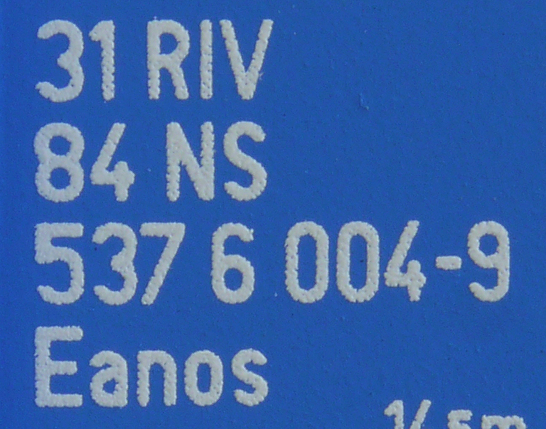 | • 31 84 537 6 004-9 | → | nákladní, s podvozky, pevný rozchod, ve vlastnictví železniční správy, RIV, PPV |