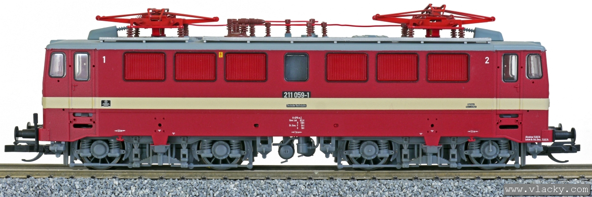 Popis   elektrická lokomotiva červená s krémovým pruhem, šedá střecha a šedé podvozky