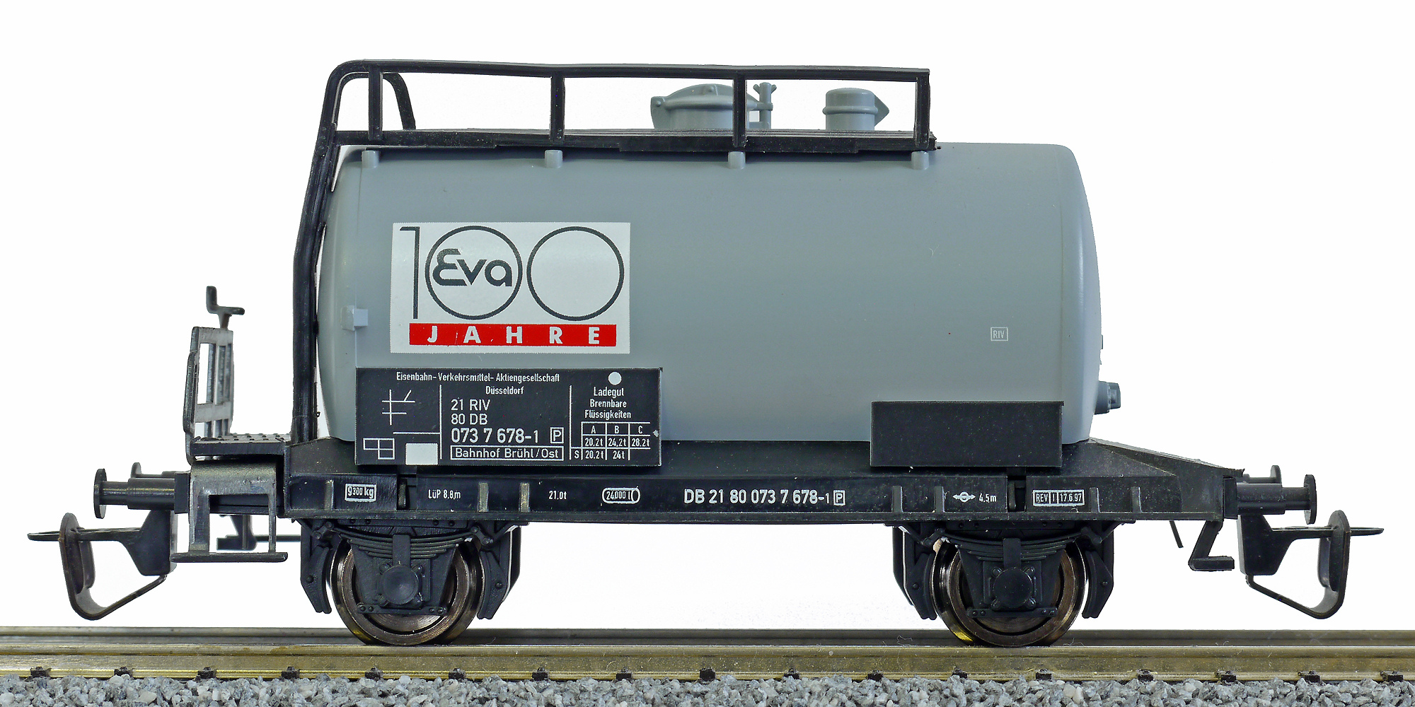 cisternový vůz světle šedý s černým rámem „100 Jahre EVA“