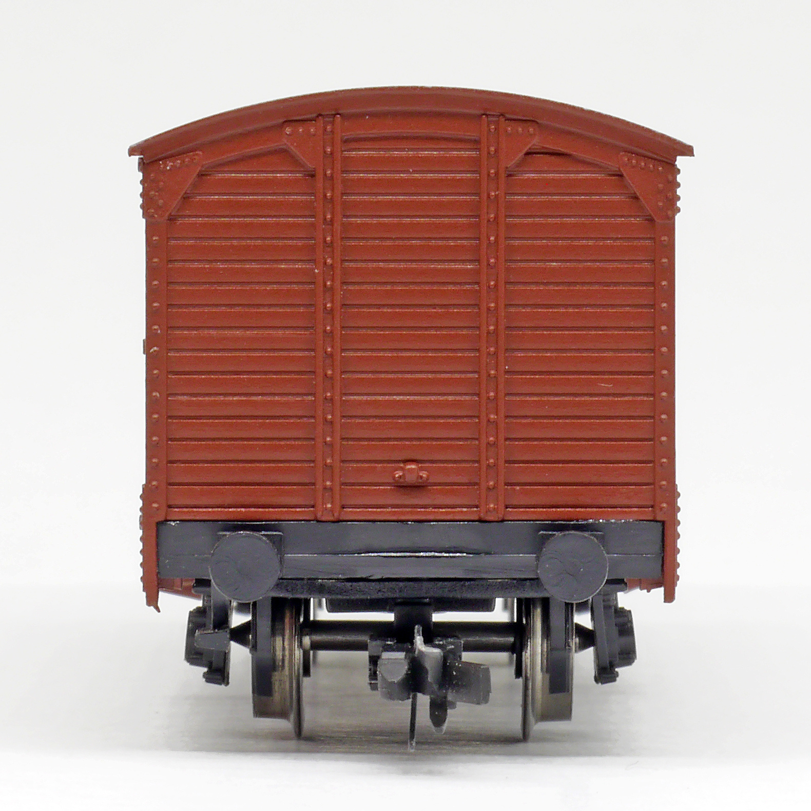 Popis   krytý nákladní vůz červenohnědý se světle šedou střechou