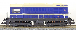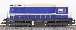 | dieselová lokomotiva modrá-krémová s černým pojezdem |