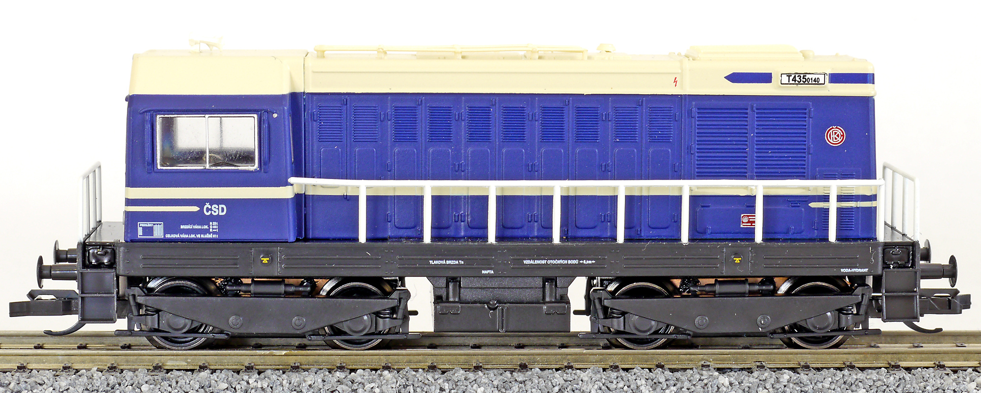 měřítko 1:120 - rozchod kolejí 12 mm osvětlení - 3 reflektory vpředu, 2 světla vzadu, přepínatelné podle směru jízdy 4 hnané nápravy 2 bandážované nápravy kinematika krátkého spřáhla (KKK) podle normy NEM 358 digitální rozhraní podle NEM 658 s konektorem PluX12 105 mm - celková délka modelu přes nárazníky 4 - celkový počet náprav nebo rozložení náprav 150 g - hmotnost brutto - model včetně prodejního obalu