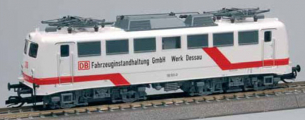 | elektrická lokomotiva bílá s červenými pruhy, černé podvozky „Werkslok Dessau“ |