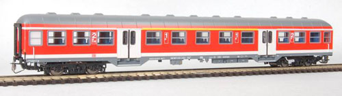 | osobní vůz červený s bílými proužky a dveřmi a s šedou střechou 1./2. tř. |